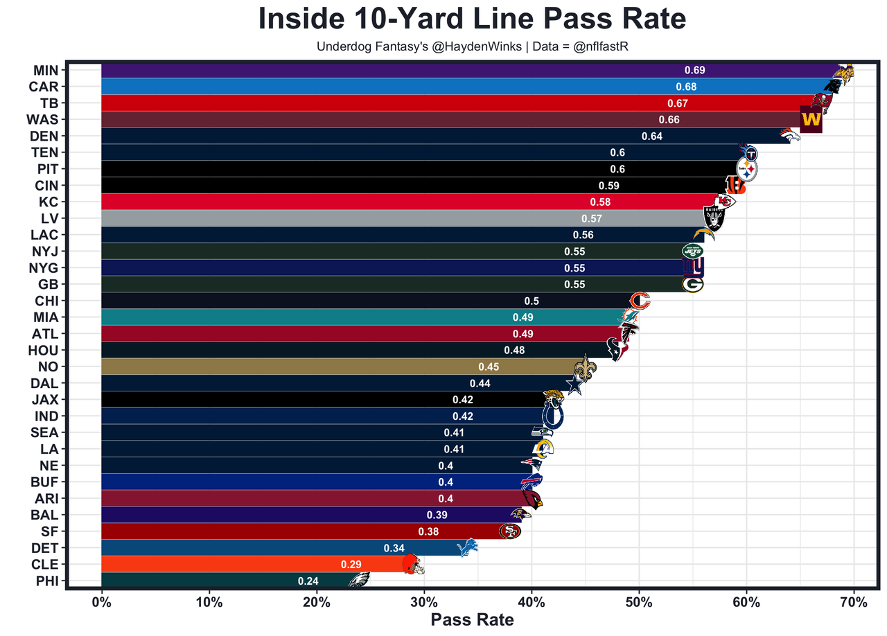 DeVonta Smith - He's the WR35 in usage this month, and the Eagles' low-league pass rate inside the 10-yard line will work against Smith always, but this matchup is just so good. Smith had 8 targets (24%) against Washington's No. 28 fantasy WR secondary in Week 4. 49.5 receiving yards in Pick'em.