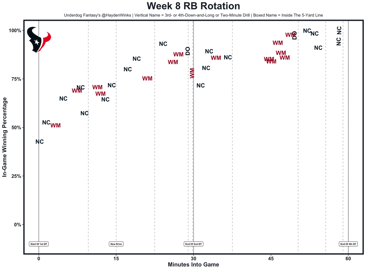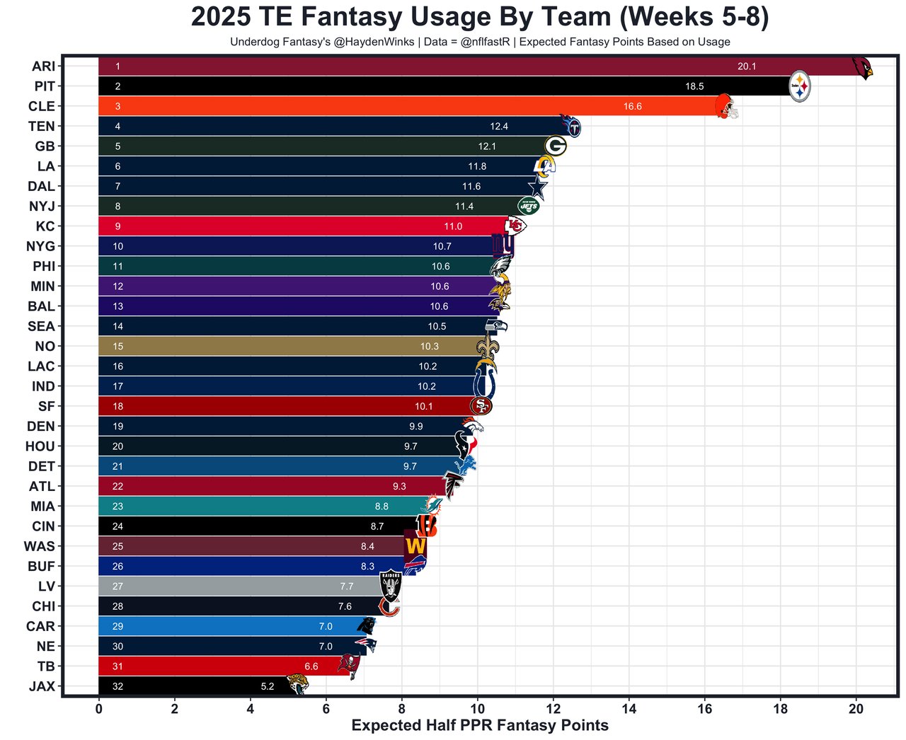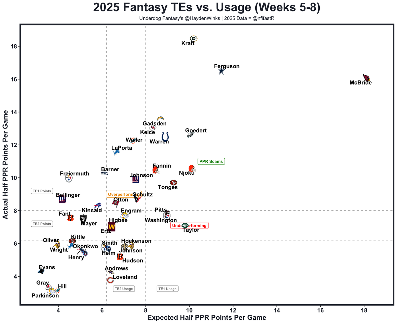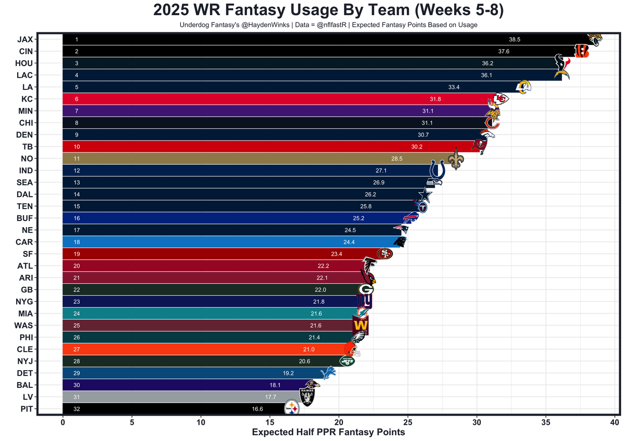 Posted every Tuesday, The Fantasy Usage Model combines my expected fantasy points model with his film notes to recap the previous week's game. An explanation of this is here, but it basically turns targets, carries, air yards, goal line touches, and other variables into expected fantasy points. We have the sickest fantasy show ever on Tuesday nights going over this column. If you have time for 1 hour of fantasy content, make it this one.