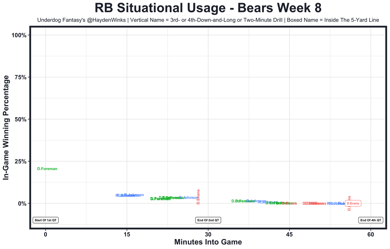 D'Onta Foreman - This turned into a drive-by-drive 3-way committee before you could blink with Roschon Johnson back. Foreman's odds of finding positive game scripts are lowered as 8.0-point road dogs to the Saints. 7.05 fantasy points in Pick'em.