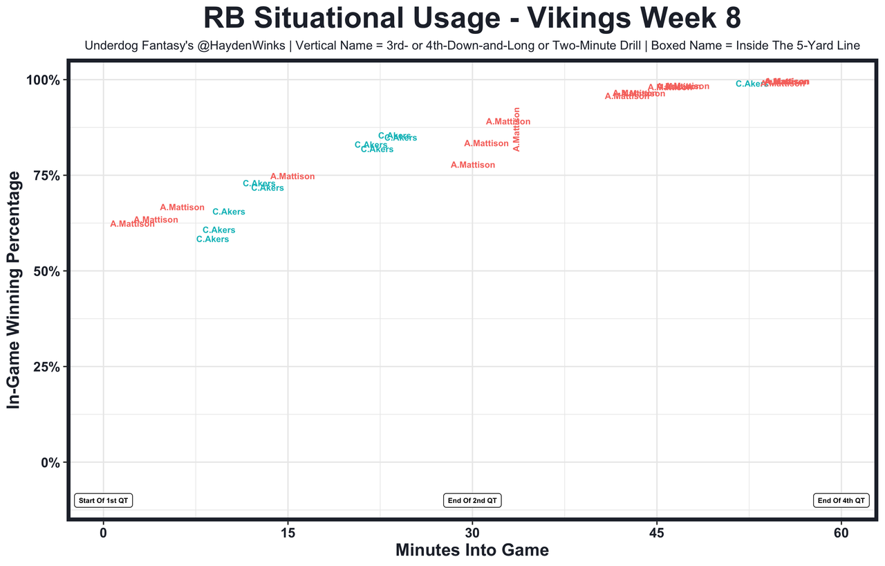27. Jaren Hall - Vikings @ ATL (16.25, +4.5)