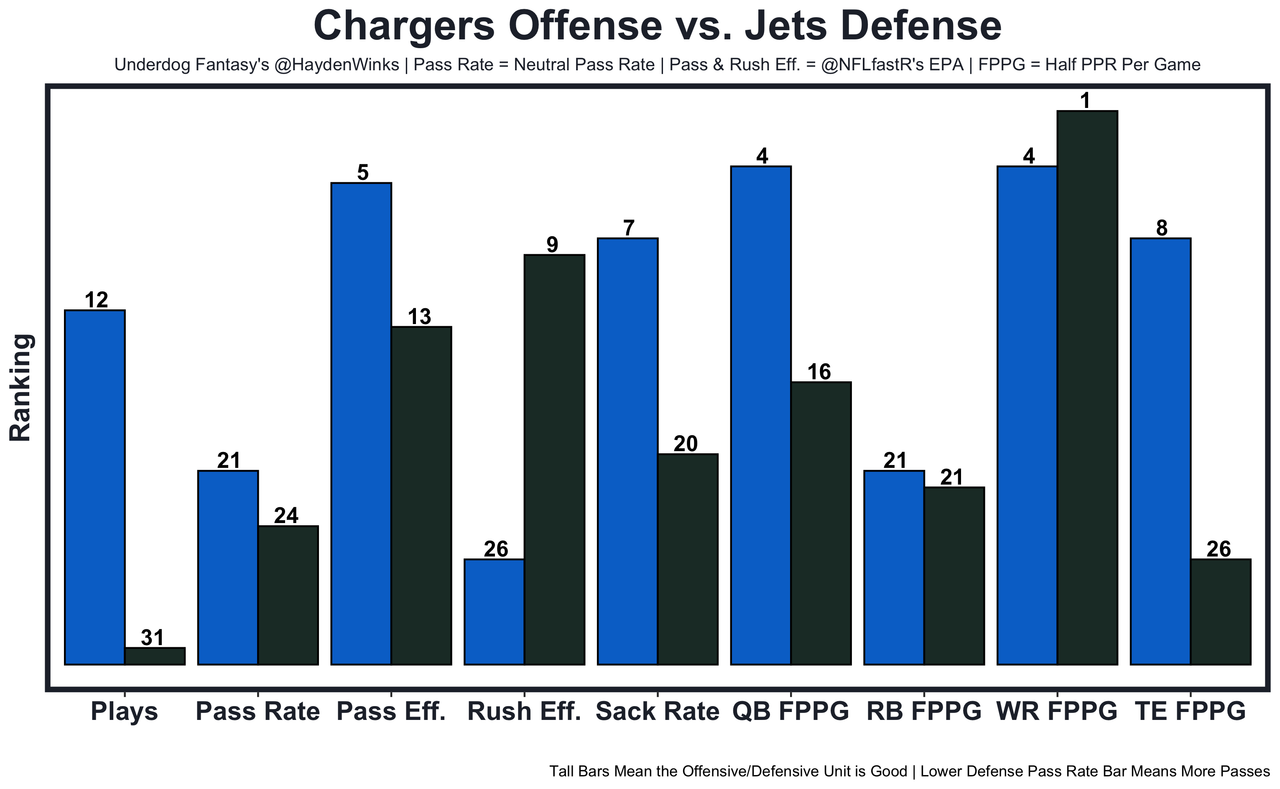 Austin Ekeler - He's had 17.2 expected half PPR points in his 4 healthiest games. A lower team total (22.25) against the Jets works against Ekeler, but New York is 4th in RB receptions allowed this season.