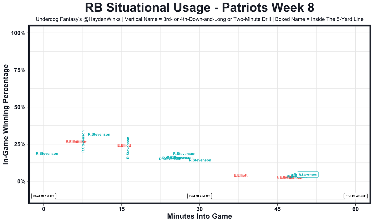 Ezekiel Elliott - See RB16 Rhamondre Stevenson. 6.55 fantasy points in Pick'em.