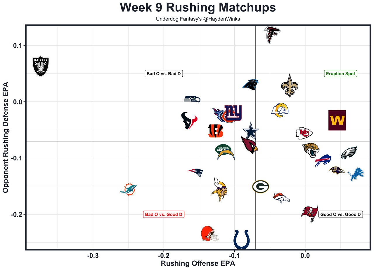 Dallas is 31st in red zone TD rate, so there are positive regression notes in his profile.