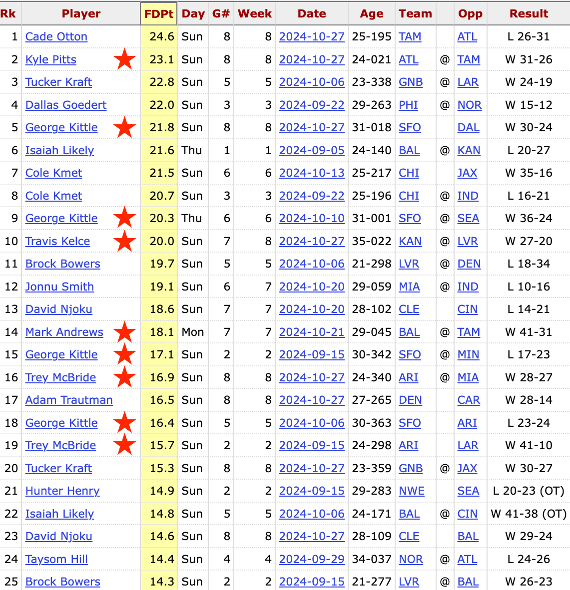 His last 5 healthy games: 16.3 half PPR points on 19.9 expected half PPR points. It was a bummer that Nabers couldn't get another foot in the end zone on Monday Night Football.