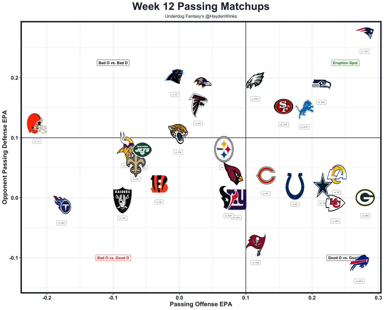 The Bengals have allowed 18.6 half PPR points per game to TEs. The 2nd-worst defense is only at 14.4 points. They've given up tackling (just ask Darnell Washington), and with a strong CB1, the ball just gets funneled over the middle. Henry has been quiet with the WRs stepping up around him (TE25 on TE24 usage this month), but he's still capable of a random spike week. This wouldn't be random. New England is 3rd in projected points at 29.0.