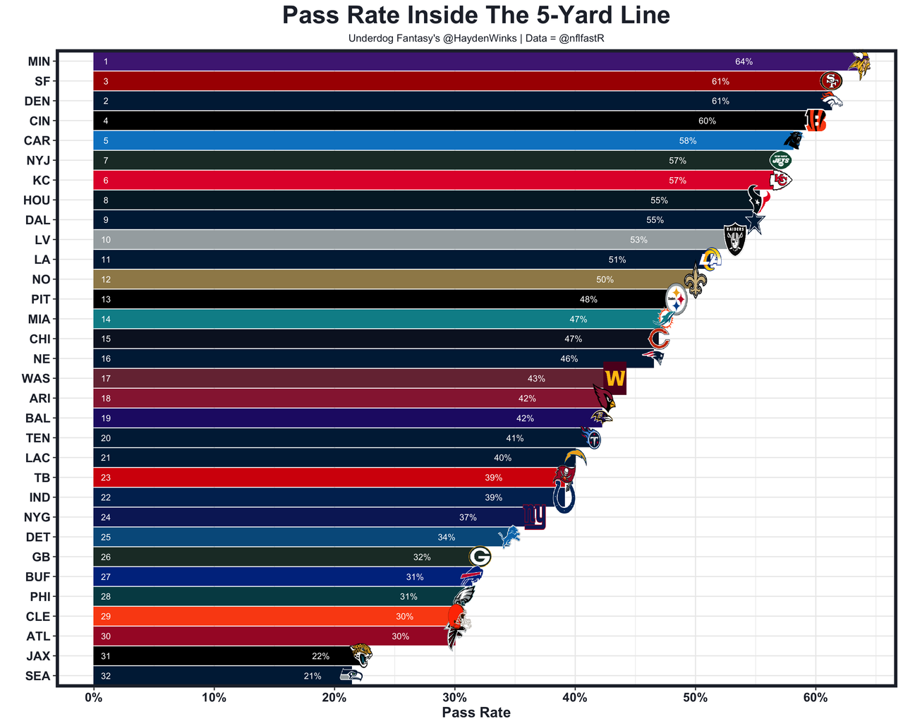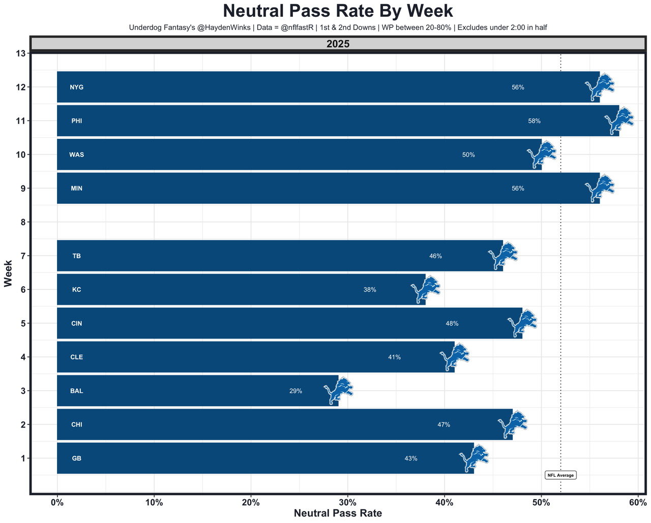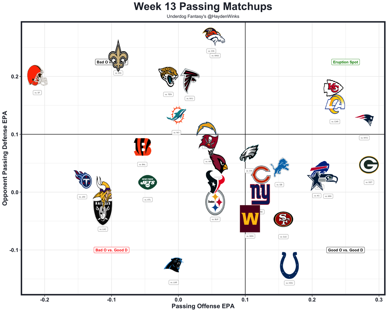 The Eagles haven't been able to run it well all year long, and last week, they passed the ball at the highest rate in neutral situations. Coincidence? I'm not sure. The pass game is largely working right now, and then Hurts finishes off drives with Tush Pushes. That's great for Hurts in fantasy if it continues. The Eagles are 6th in projected points (25.75) against a Bears defense who is limping into the holidays.