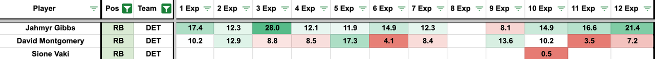 See Jahmyr Gibbs for more, but Monty is only the RB41 on RB36 usage this month as mostly a handcuff only.