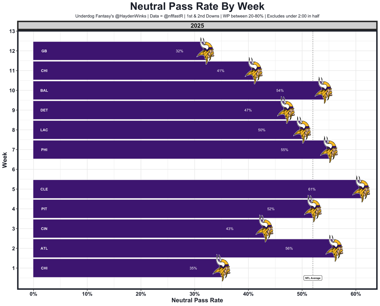 The offense will hide the QB the rest of the way, regardless if it's Max Brosmer or JJ McCarthy (concussion). Jones remains the clear lead back over Jordan Mason, but that's only made him the RB25 on RB30 usage this month with the offense fully bottoming out. Most likely, Brosmer is better than McCarthy, but will we see that in Seattle? The team total is at 17.0 points, the 2nd-lowest of the week.
