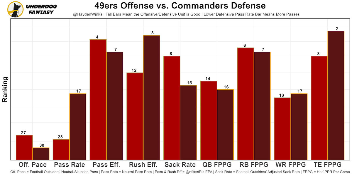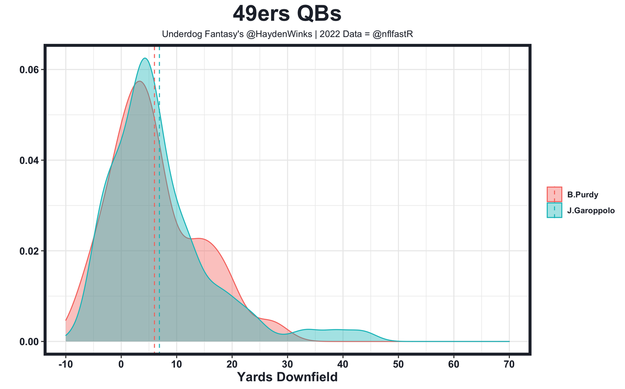 George Kittle - It's insane to see how similar the Jimmy Garoppolo and Brock Purdy splits look. As always, Kittle is a boom-week TE1 on TE2 usage. Take the lows with the highs, especially when Deebo Samuel isn't drawing schemed up looks. That's how Kittle gets mind-melting looks over the middle on double pump fakes.