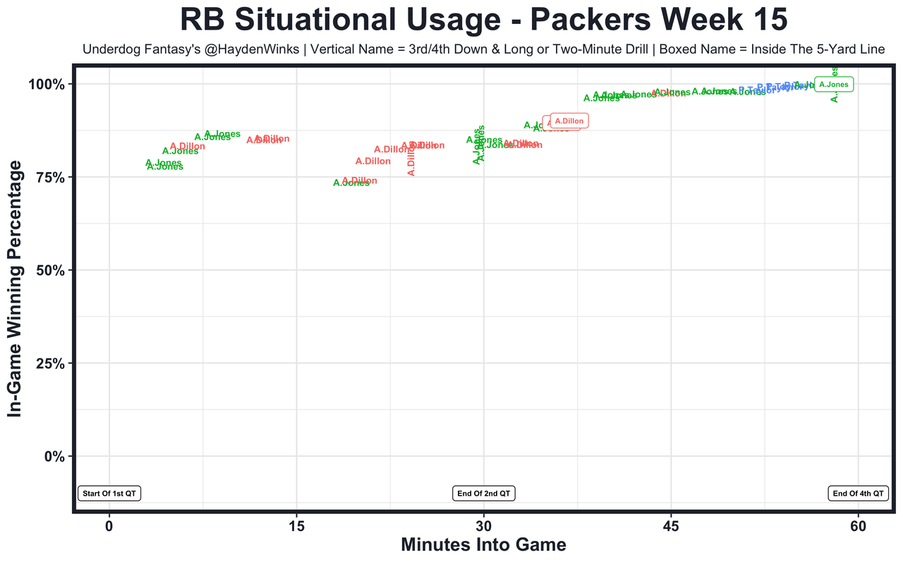 AJ Dillon - The Packers are 3rd in RB fantasy usage over the last month, so there are upside scenarios for the thiccccccc back, especially in December weather.
