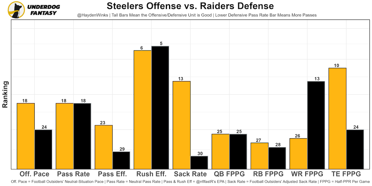 George Pickens - No Raiders CB1 Rock Ya-Sin (knee), while Diontae Johnson (toe) is banged up.