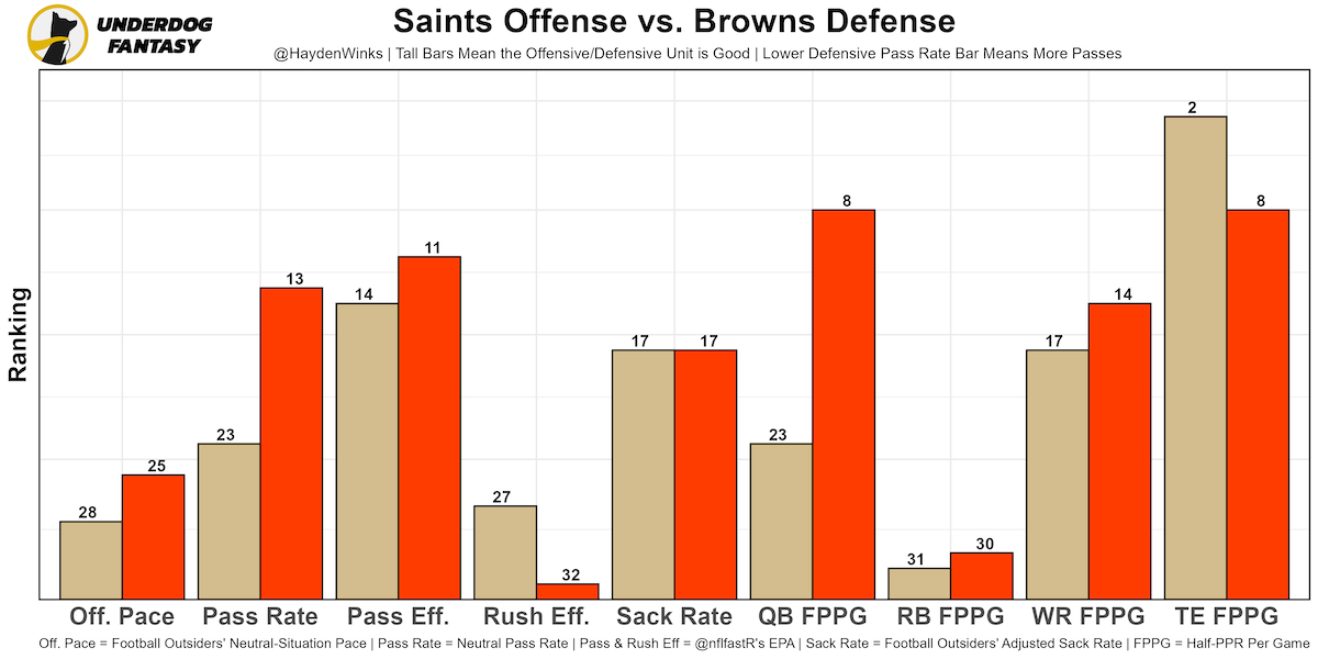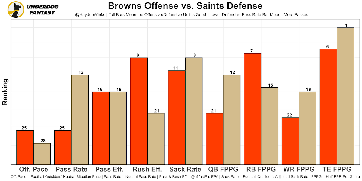 Taysom Hill - No Chris Olave (out) or Jarvis Landry (IR), and the weather is as bad as it gets in Cleveland. Why not go with a crazy Taysom game plan this week? No Jadeveon Clowney for the Browns.