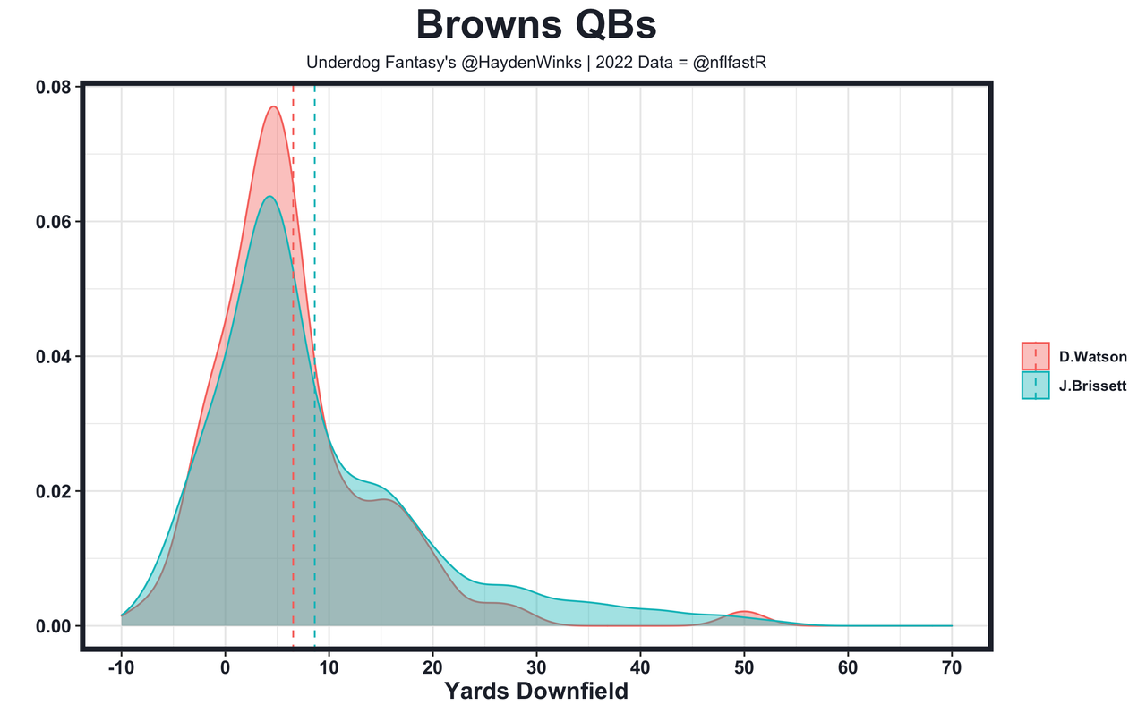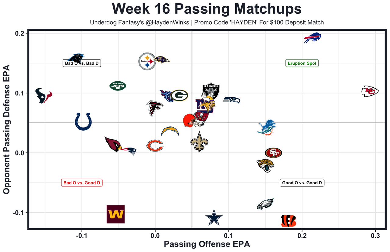 Amari Cooper - The chart shows some of the things I'm seeing on tape from Deshaun Watson: not having a good feel in the pocket. He's been a primarily panic checkdown or break the pocket QB, rather than ripping throws over the middle like Brissett was doing off of play action. Cooper lives in the intermediate, so it's worth diving into. This week, Cooper will be dealing with weather (8° F with a 62% chance of snow and 27 MPH winds). Our Pick'em projection is set at a wild 6.15 fantasy points.