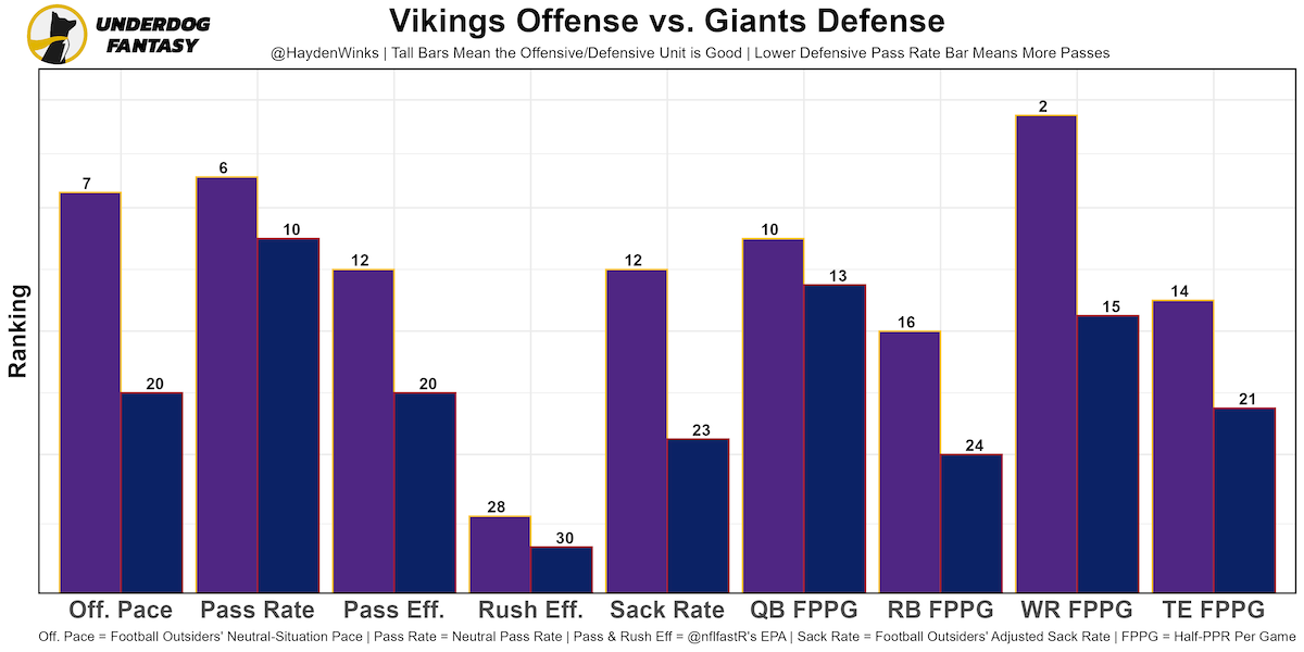 A career-high 42 rushing yards per game, indoor conditions, and a solid 22.25-point team total have Jones on the QB1 periphery in a projected down week in fantasy land. The Vikings defense also just played 79 snaps in an overtime thriller last week.