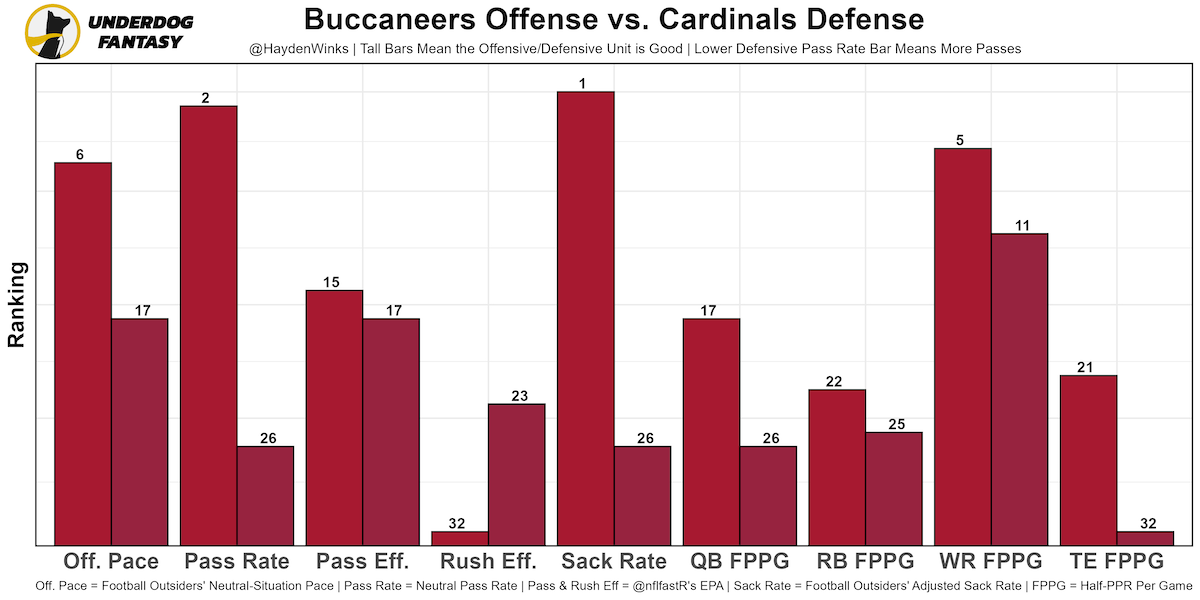 The Bucs are returning to a more pass-heavy approach, and it's (potentially) a good week to buy the dip on the offense with indoor weather against the No. 26 fantasy QB defense. Let's monitor the offensive line injuries with LT Donovan Smith (DNP) and RT Tristan Wirfs (limited) both on the injury report.