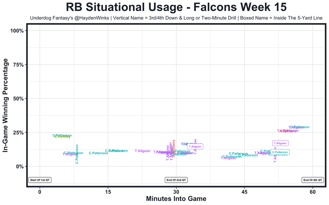 Cordarrelle Patterson - Both Falcons backs have spiked-week potential, but it'll be harder to hit a ceiling in an offense with the 2nd-lowest team total on the week. It's also possible Post-Bye Rookie Bump Tyler Allgeier cuts off a larger piece of the pie with the 31-year-old CPatt not being a long-term asset to the organization.
