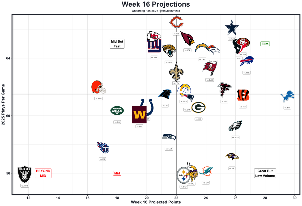 The Texans are 3rd in projected points (26.25) at home against the Raiders, and Stroud is playing his best ball since his rookie season right now. He's seeing the field well from the pocket and showing some athleticism beyond it. The OL is much better now than before, and his receivers are all healthy again. This is an eruption spot in every way. The Texans need wins, while the Raiders are borderline tanking and have a starting CB on IR.