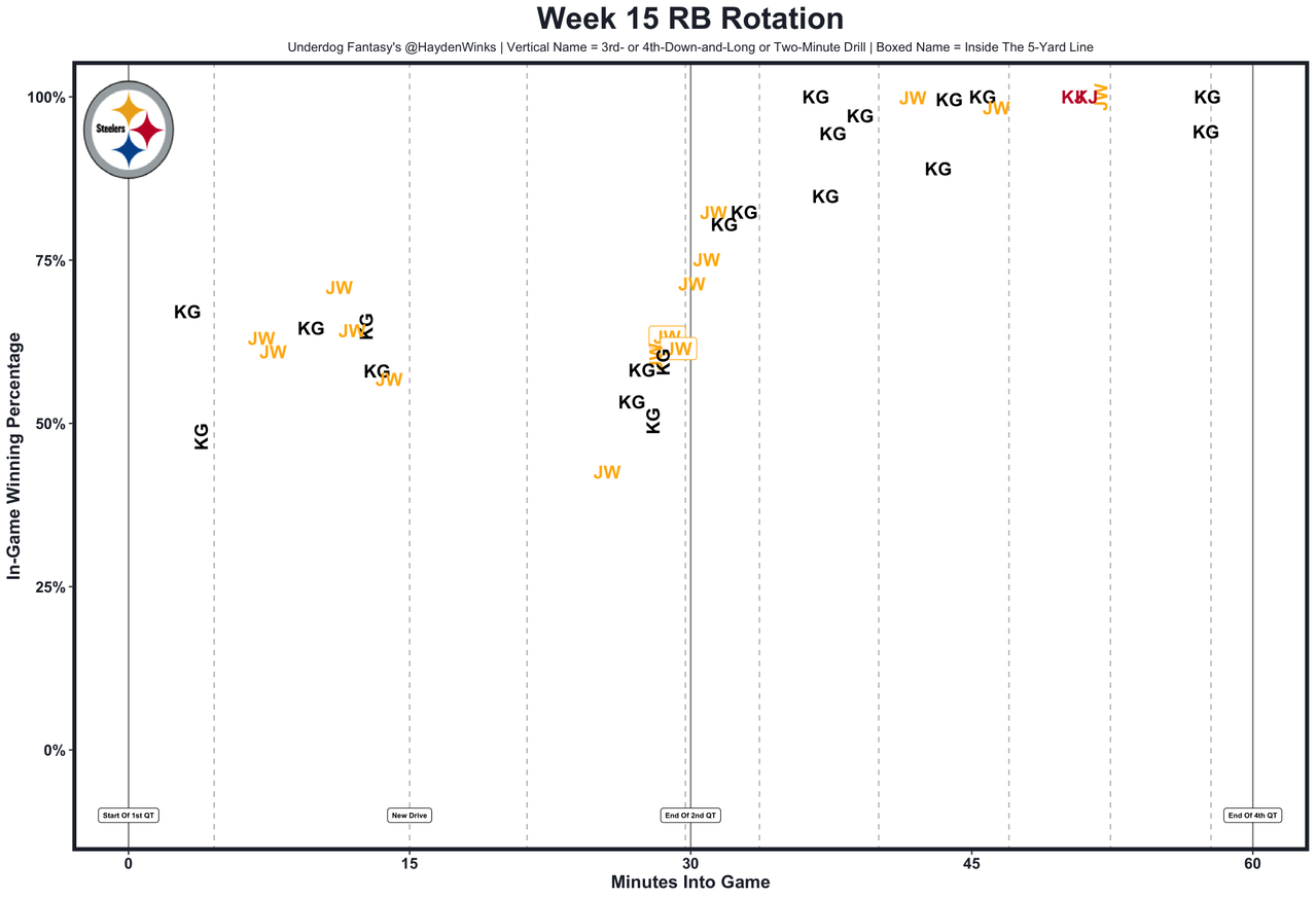 Jaylen Warren - 56.5 total yards in Underdog Pick'em.