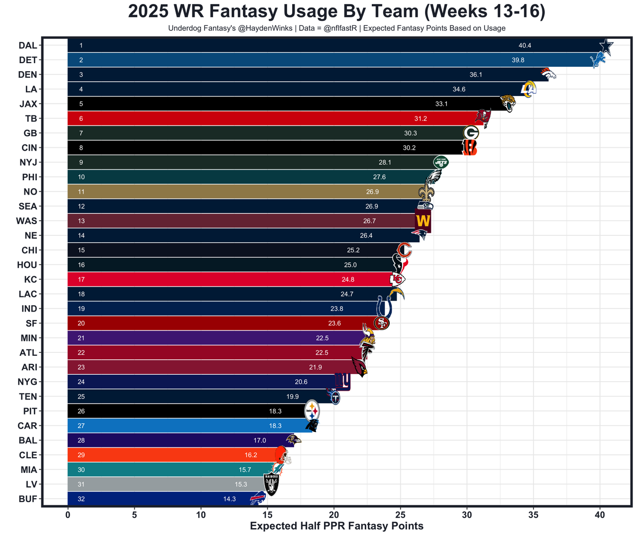 Two weeks ago, Williams picked up a minor injury which kept him on the injury report heading into Week 16. In the game, Malik Davis was getting full series far earlier in the game than usual, and then Williams was fully subbed out in the 4th quarter due to the score board. Ultimately, it was a season-low 8.6 expected half PPR points for Williams, who has just been quieter in the 2nd half of the season. Maybe his knee just can't hold up for 17 games. Who knows? He's the RB21 on RB12 usage this month, but this is an eruption spot against the tanking Commanders on a short week with their own QB3. Dallas has a monster 28.75-point team total.