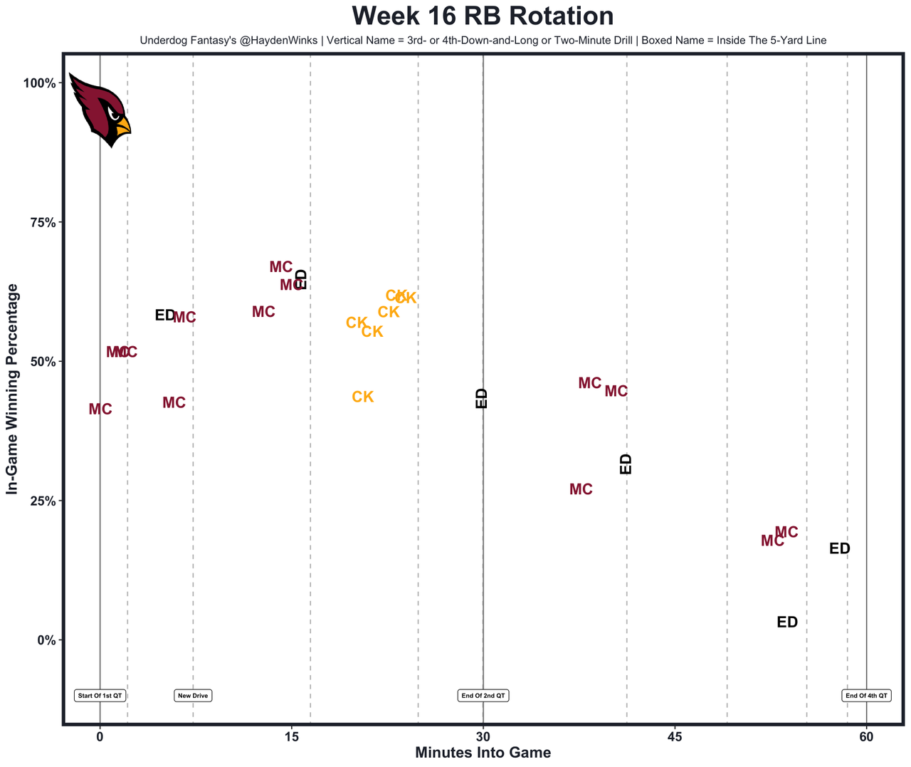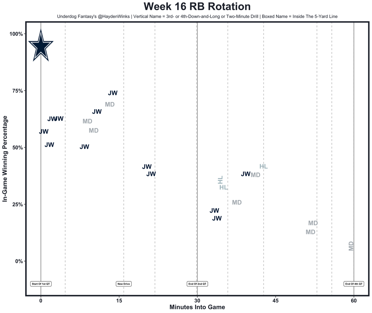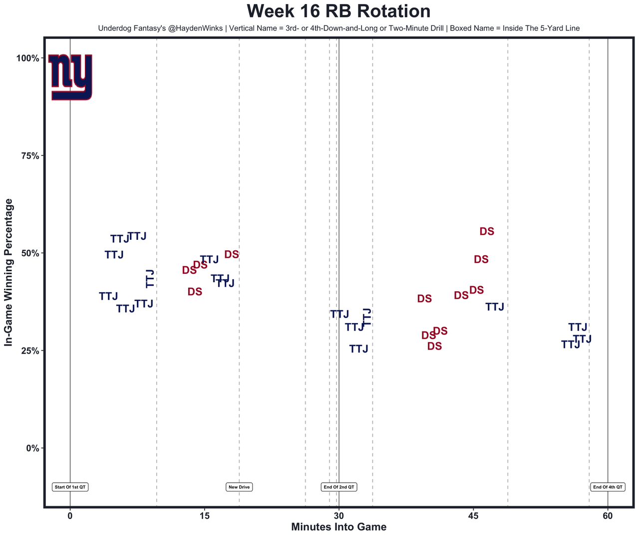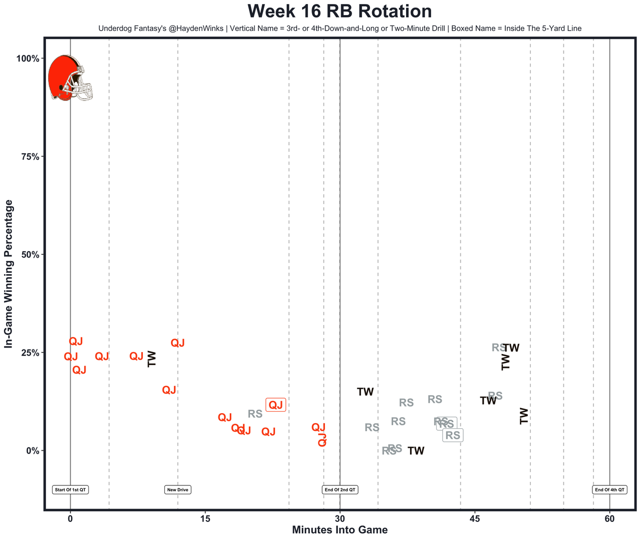 Jordan Mason (ankle) was carted off and will likely miss the year. Jones was the bellcow without Mason in Week 16, though he was limping around himself. He racked up a season-high 16.2 expected half PPR points despite the offense looking quite bad. It easily could be Max Brosmer on a short week if JJ McCarthy's right hand can't quickly heal, and veteran C Ryan Kelly picked up his 3rd concussion of the year, too.