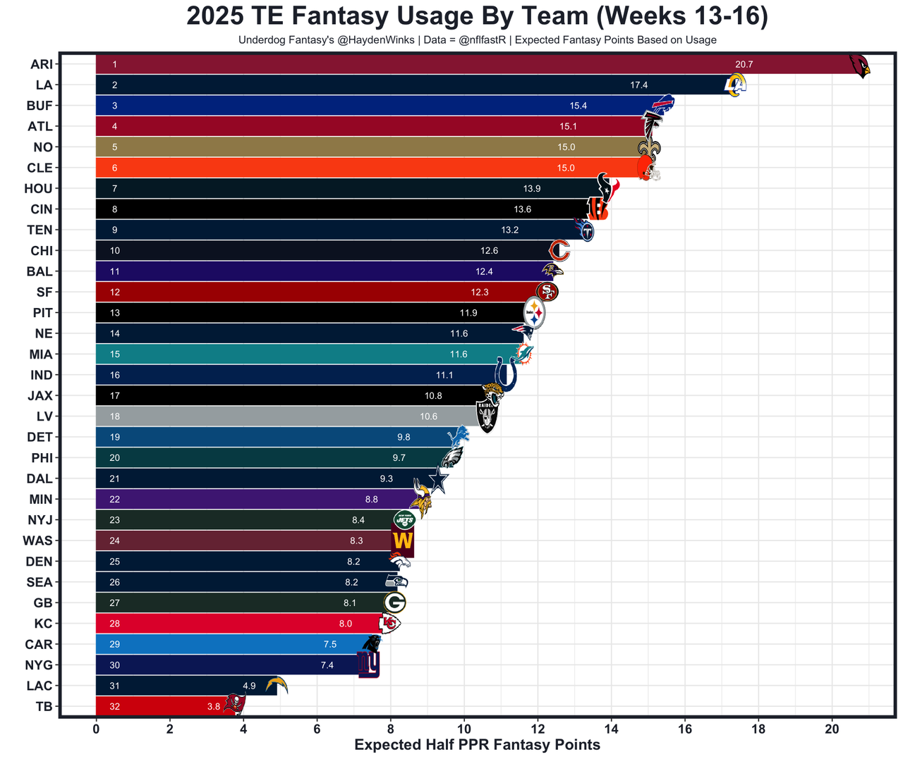 He's the TE17 on TE16 usage this month and is coming off a season-high 12.8 expected half PPR points.