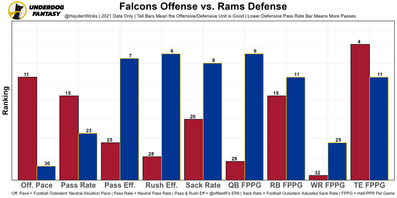 Hayden Hurst - A mediocre player, Hurst remains the 4th or 5th option in the pass game but at least ran a route on 80% of Week 1 dropbacks.