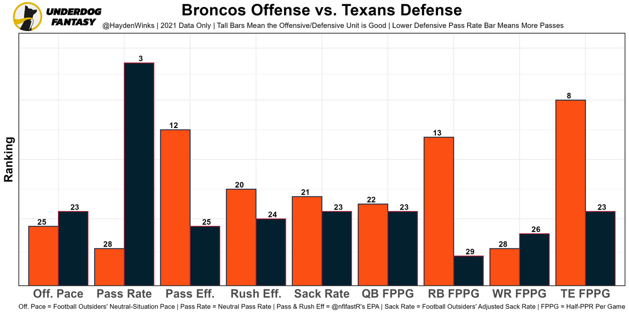 Courtland Sutton - A 16% target share was relatively disappointing, but the Seahawks knew how to play into Russell Wilson's weaknesses and Sutton quietly was the WR6 in air yards still. This week, Sutton gets rookie CB Derek Stingley and rookie CBs get targeted often historically. Denver is 5th in projected points.