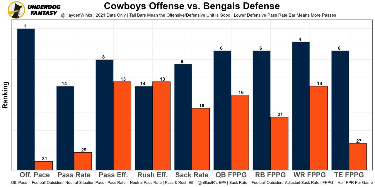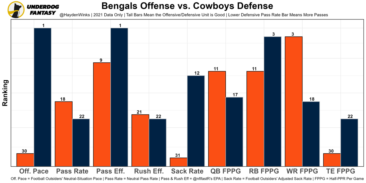 Tee Higgins (Questionable) - He's expected to play. Trevon Diggs and Anthony Brown aren't lock-down CBs in Dallas. Higgins was my Benjy Of The Week prediction on this week's episode.
