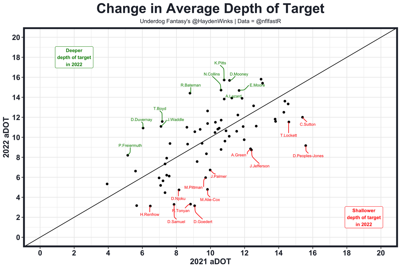 Stuck in a disorganized offense that's 28th in neutral pace and 19th in neutral pass rate, it's hard for Wilson to be an every-week fantasy QB1. I worry about this coaching staff on a short week, but the Colts defense is beatable. They're 24th in passing EPA allowed and play the scheme (single-high shell) that Russell Wilson has historically feasted on. It's a neutral situation in general. We'll see if the Broncos pass more sans Javonte Williams (ACL/LCL).