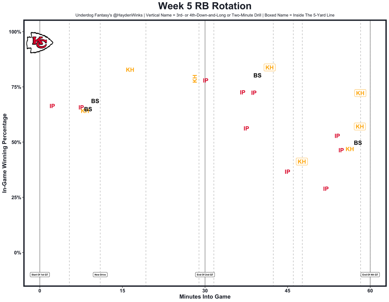 He's the RB5 on RB7 usage this month with the Lions 31st in neutral pass rate. This week, Detroit is 10th in projected points (24.75), which is a lot lower than normal, but it's an eruption spot per the rushing EPA chart. The Chiefs have struggled against RBs, are on short rest here, and their offense should shred this banged-up Lions defense on the other side. I'm expecting a huge shoutout.