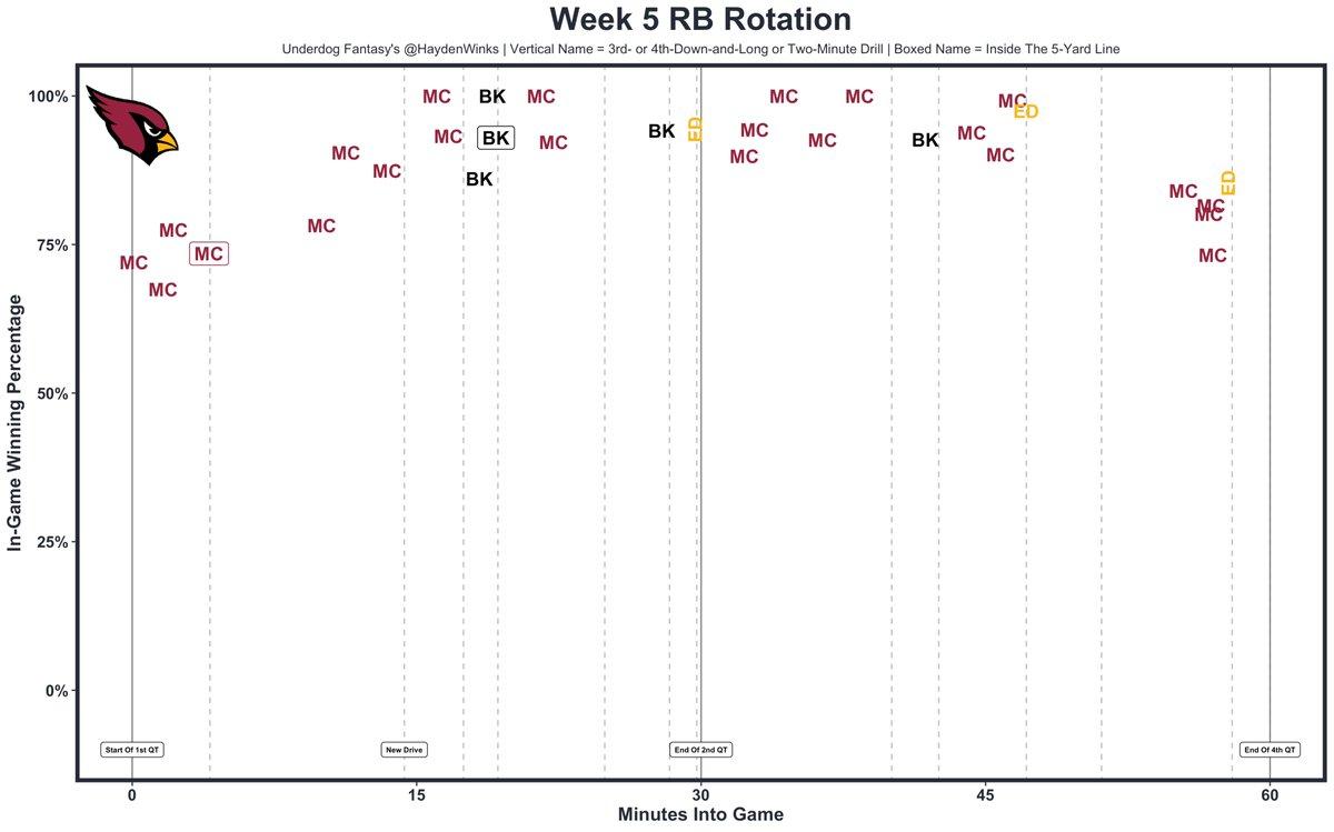 He's the RB1 on RB3 usage this month as a potential OPOY winner. The Colts get another 27-point team total (4th) at home against the Cardinals. Eruption spot.