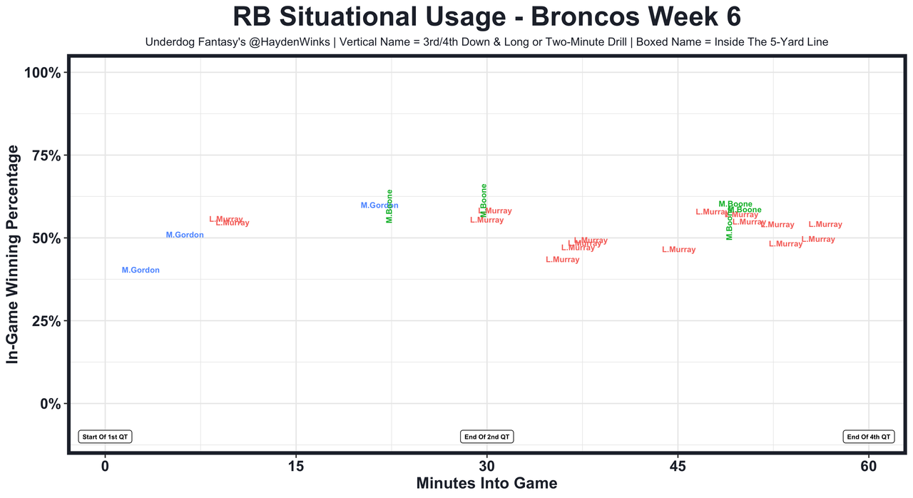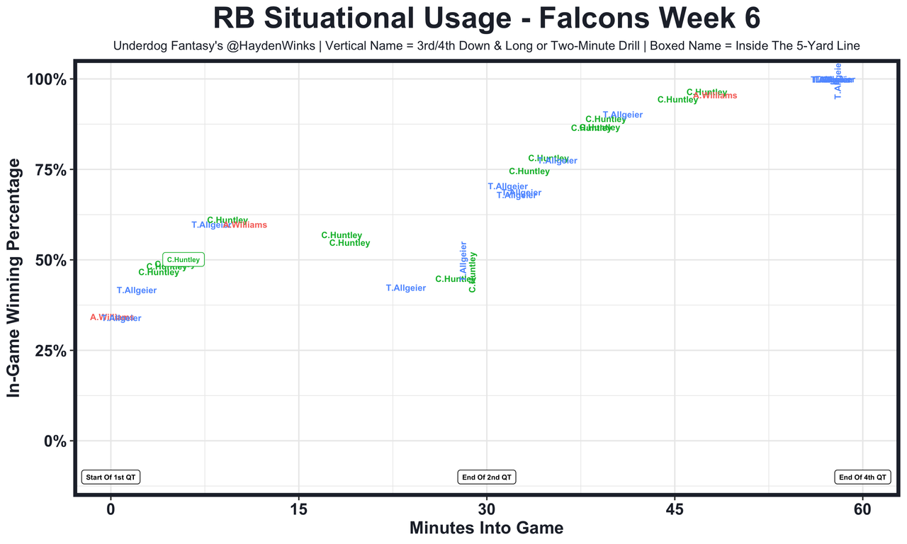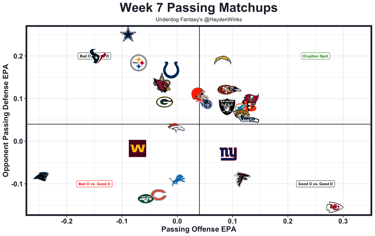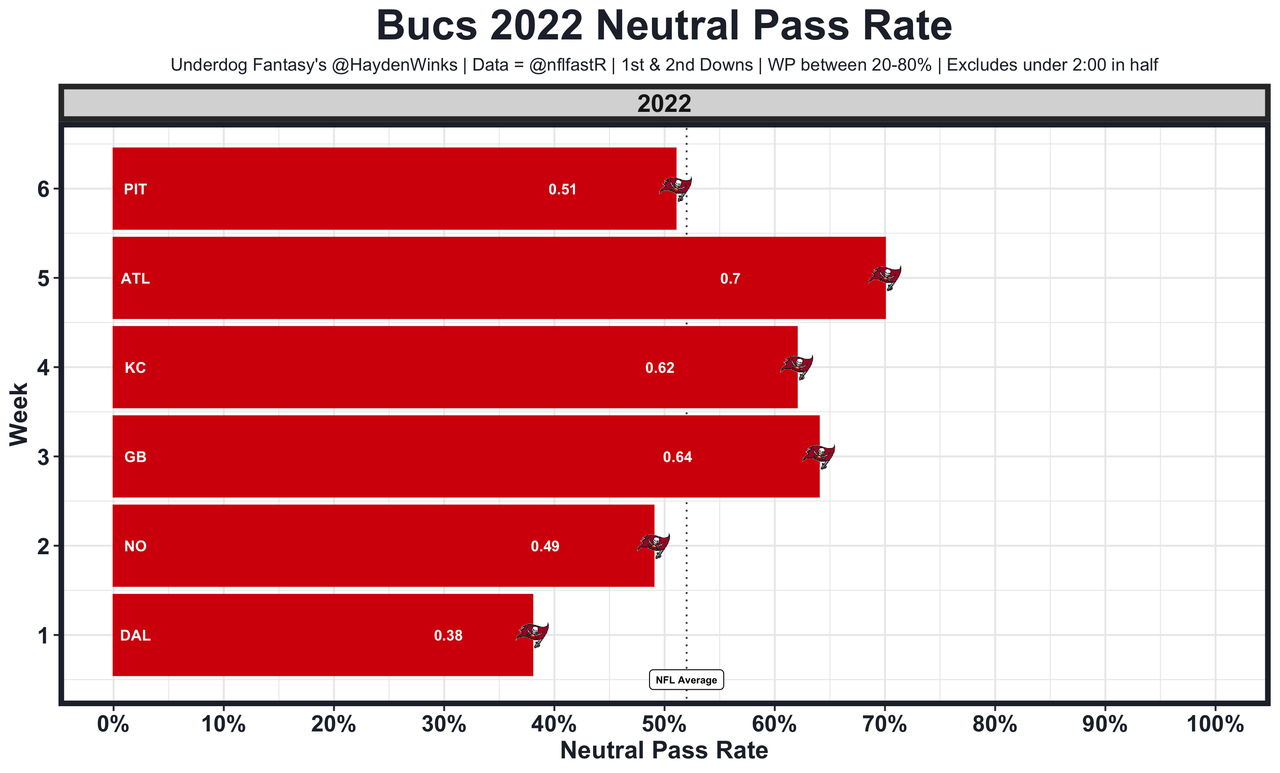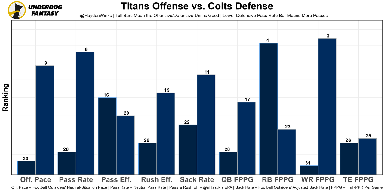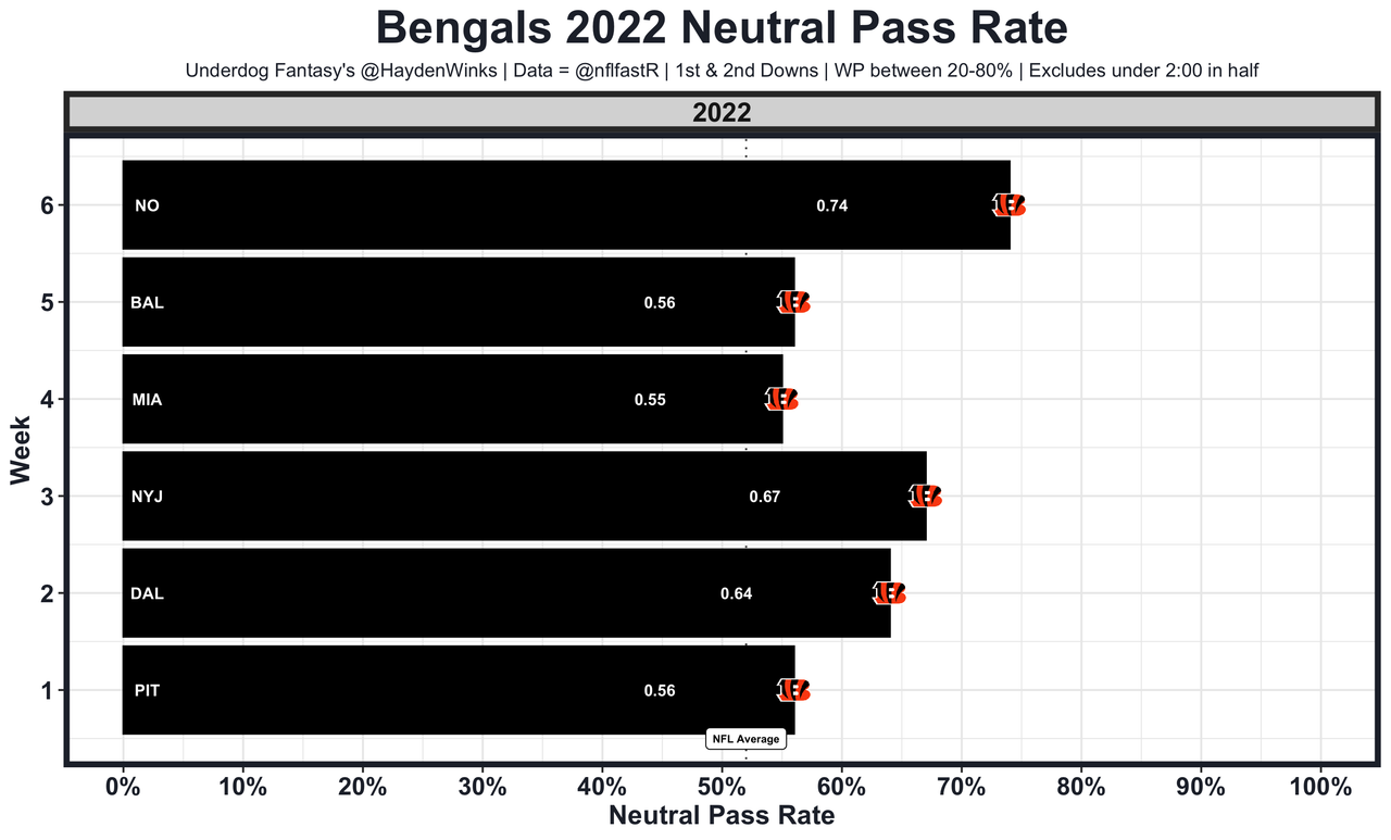 The Colts' Week 6 game plan was probably the most shocking of any game this season, shifting from unwatchable play in Week 5 to a 73% neutral pass rate. With Jonathan Taylor and Nyheim Hines likely back, this likely won't hold, but it was nice to see Matt Ryan bounce back with accurate underneath throws.