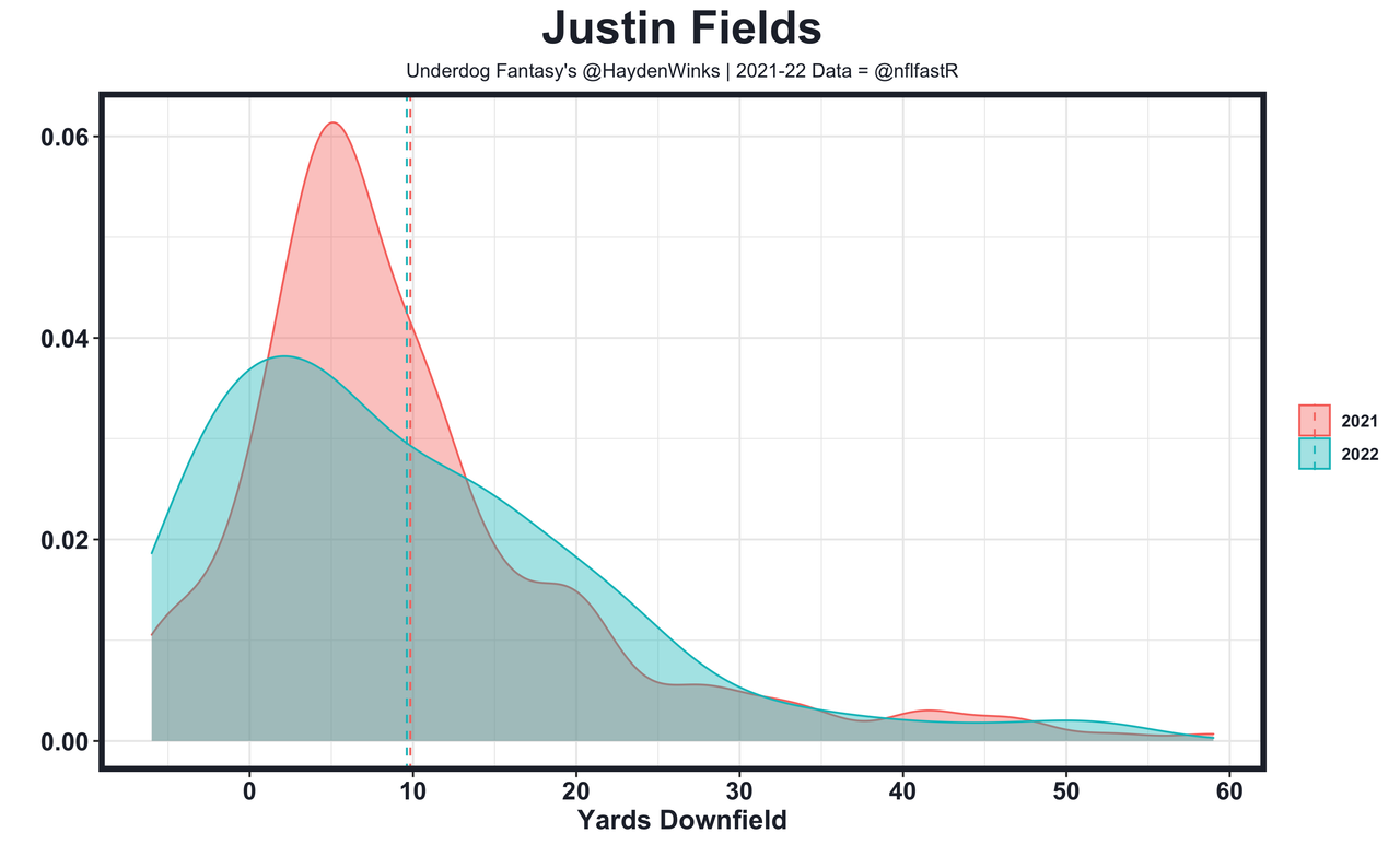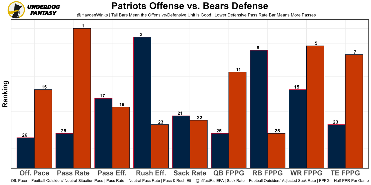 This isn't the week to get cute against the Patriots emerging defense. For Fields development, this coaching staff has increased their screen usage (it was at 6% for Fields last year and 18% this year), but we're still waiting for more designed QB runs. Until that happens, Fields is a sketchy QB2 play.