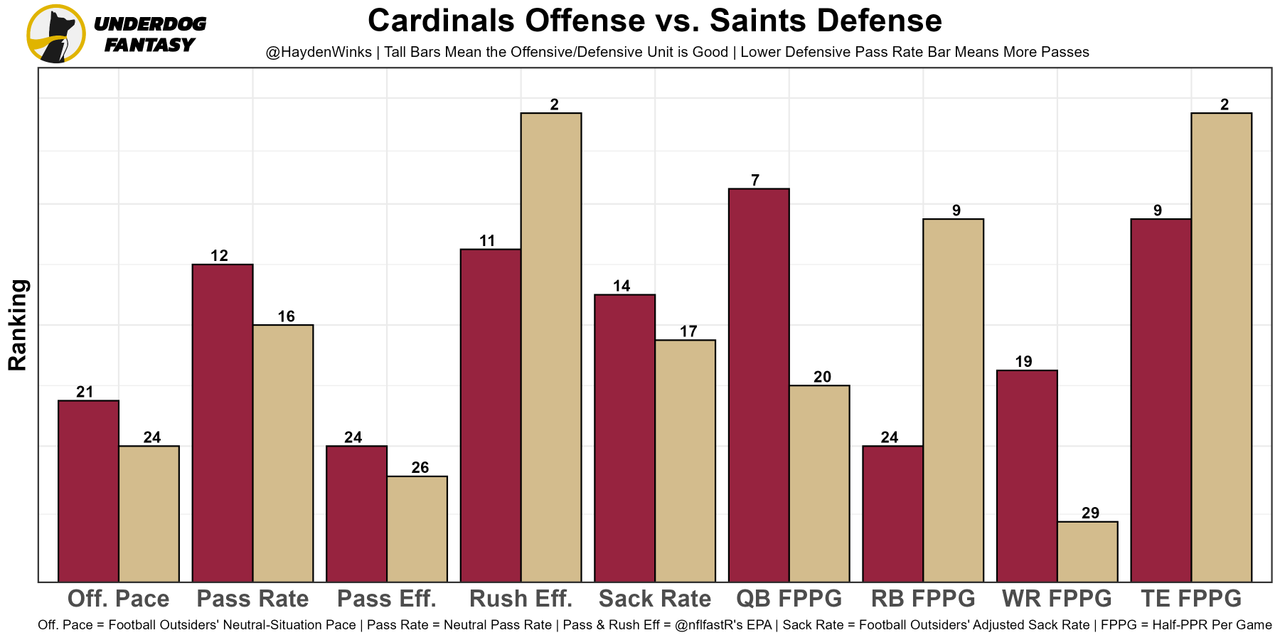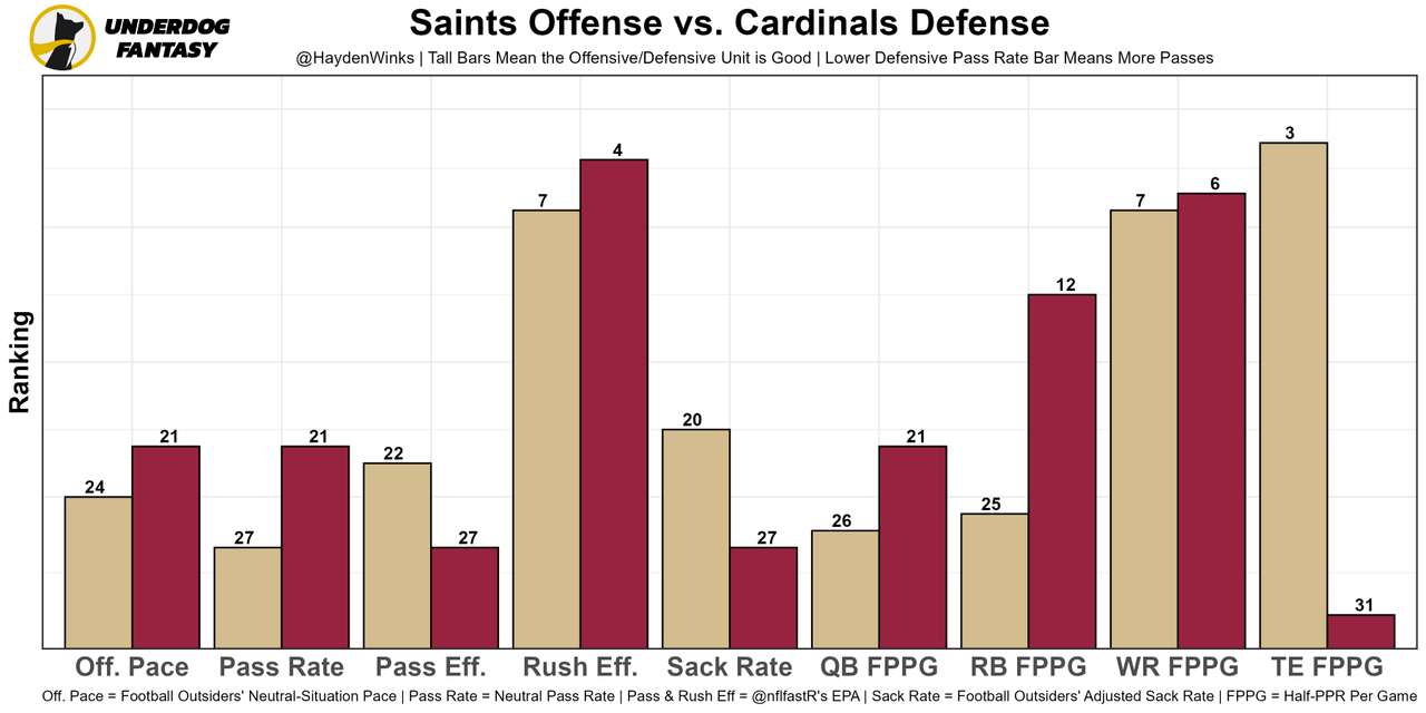 DeAndre Hopkins - The Saints are 29th against fantasy WRs, largely due to their offseason moves but also because Marshon Lattimore (out) has missed time. On top of that, the Saints are 2nd in rushing EPA allowed, making them more of a pass funnel.