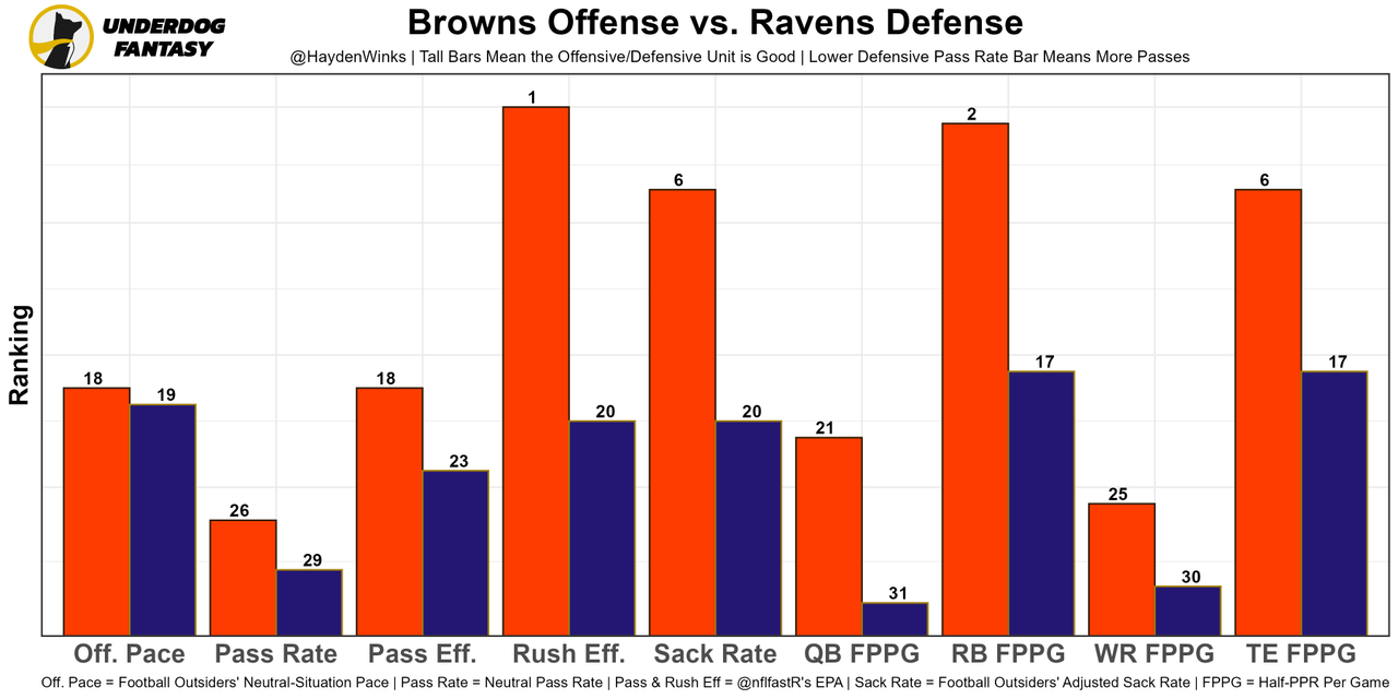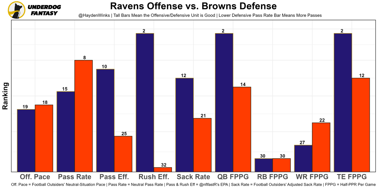 This ranking will depend on injuries, as both Mark Andrews (DNP-DNP-limited) and Rashod Bateman (limited x3) are truly questionable. The Browns struggling defense, however, will be without CB1 Denzel Ward (concussion).