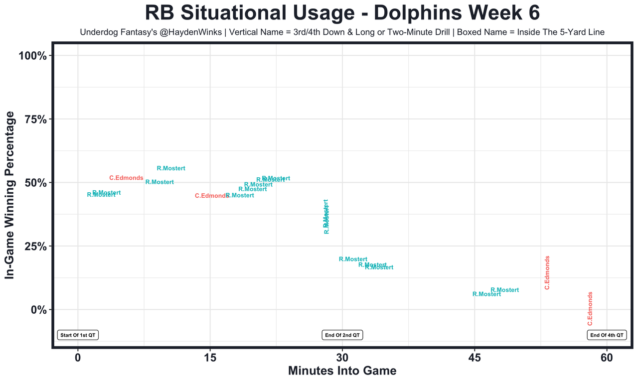 Raheem Mostert - Chase Edmonds played more in Week 6, but mostly in garbage time. When they are in neutral and positive game scripts, Mostert should be the man in Miami. They are 7-point favorites this week.