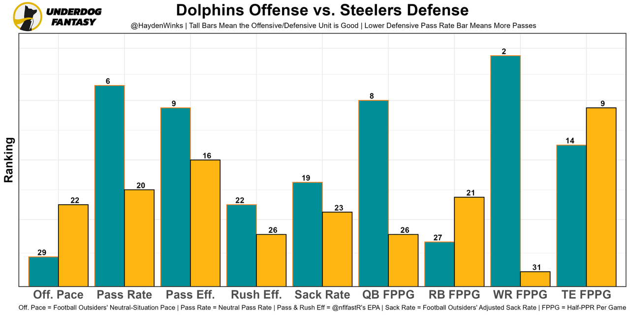Tyreek Hill - Let's monitor the Steelers defensive injuries. They're 31st against fantasy WRs this year because of missed time from multiple DB starters.