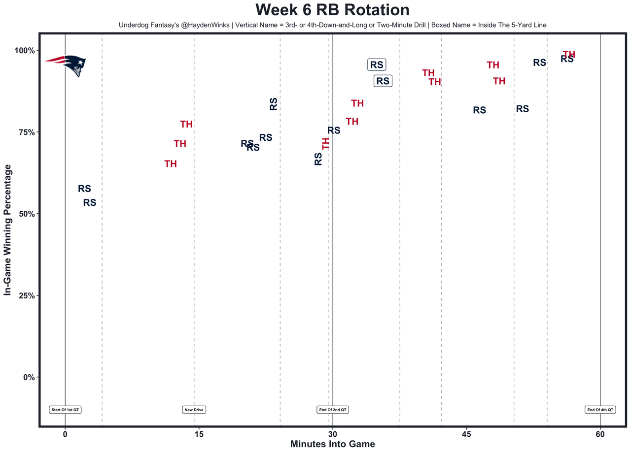Even without Antonio Gibson last week and even with the Patriots offense ranking top-8 in most advanced offensive metrics, Henderson can't get home. His 5.9 expected half PPR points last week were a disappointment, and he's unlikely to take goal-line carries away from the thicccccer Rhamondre Stevenson. Henderson has no value until he's ripping big plays and breaking tackles in space. To date, eeggghhh.