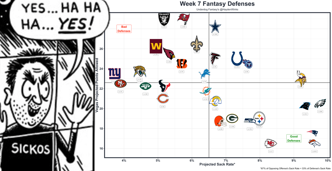 He had a season-low in usage (2.9 expected half PPR) last week, but still ranks as the TE7 on TE6 usage this month. Henry is less important with Stefon Diggs and Kayshon Boutte stepping up, but Drake Maye is ascending. A healthy 24.5-point team total awaits.