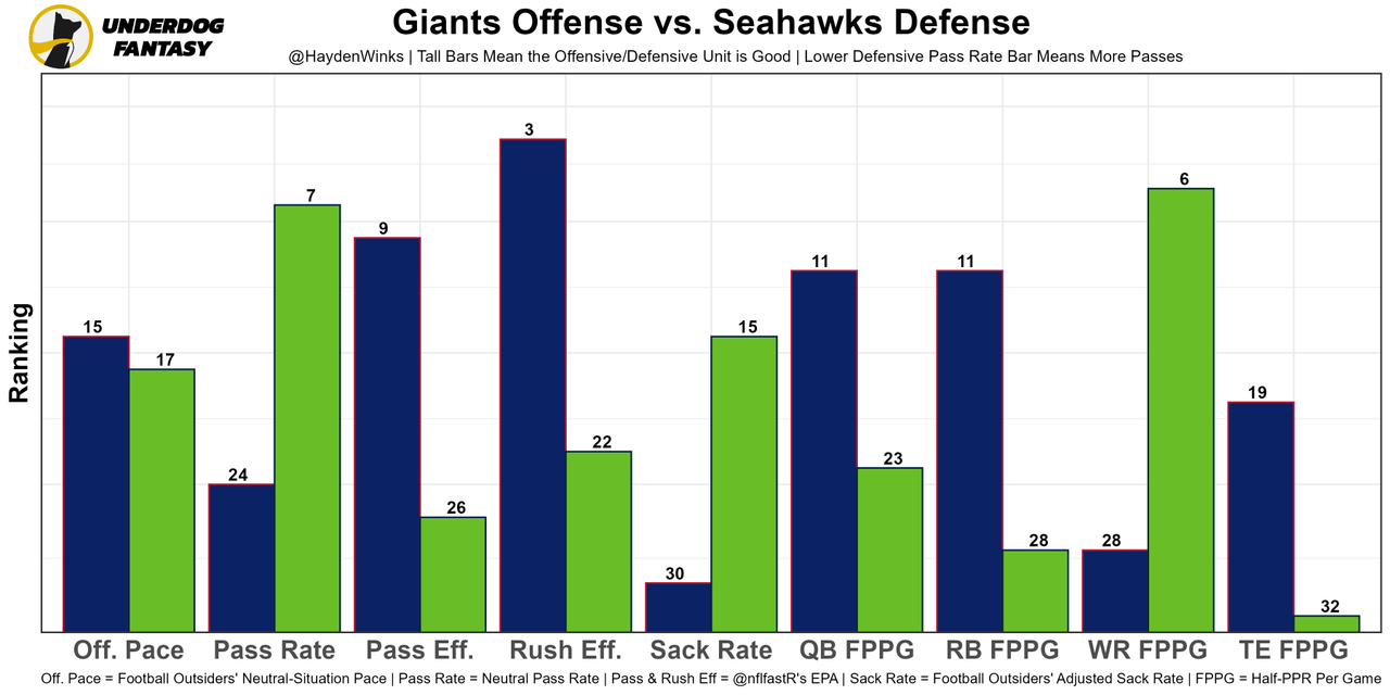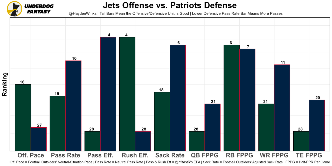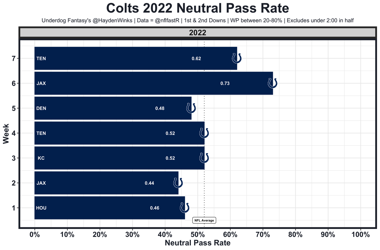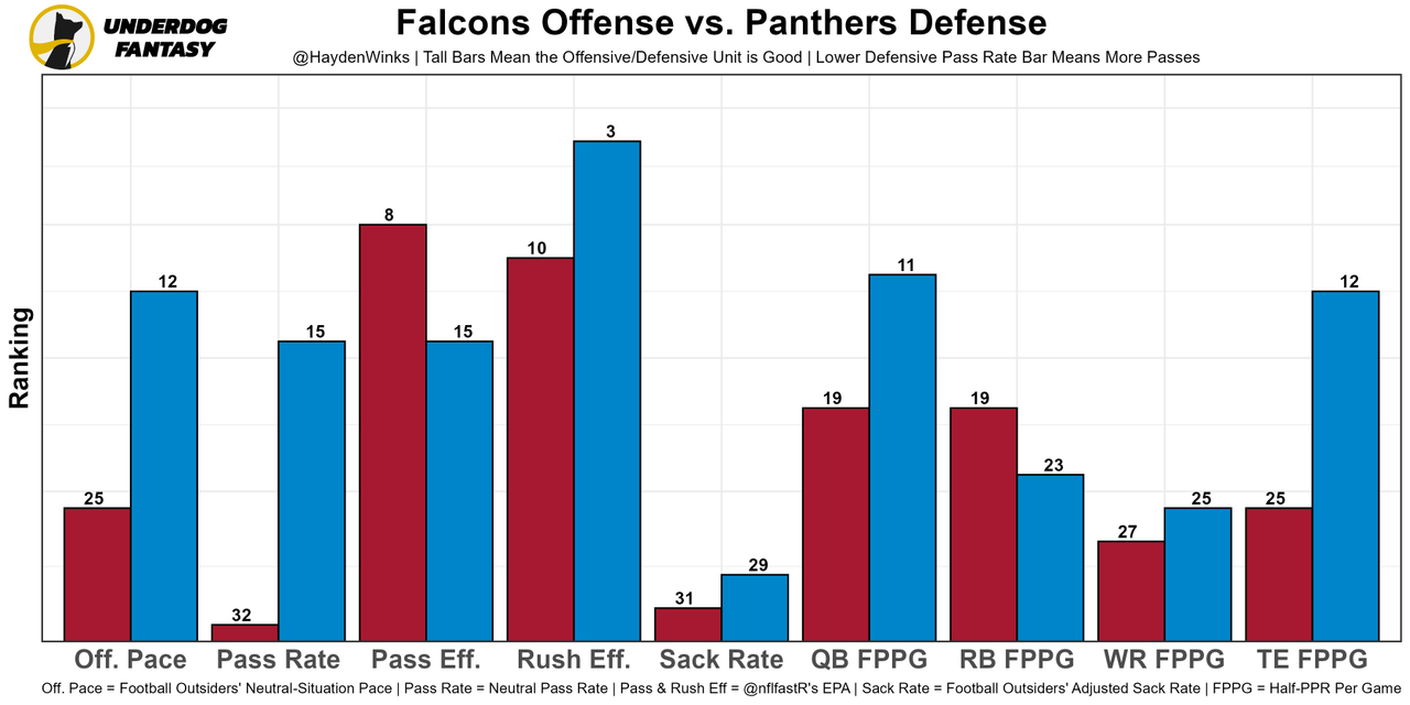 The offense only works when they go pass-happy. This week, they get the Ravens, who have the 6th-highest neutral pass rate allowed on defense. This is aligning to be a volume-based game for Brady through the air, even though the team total is fairly low at 22.25 points.