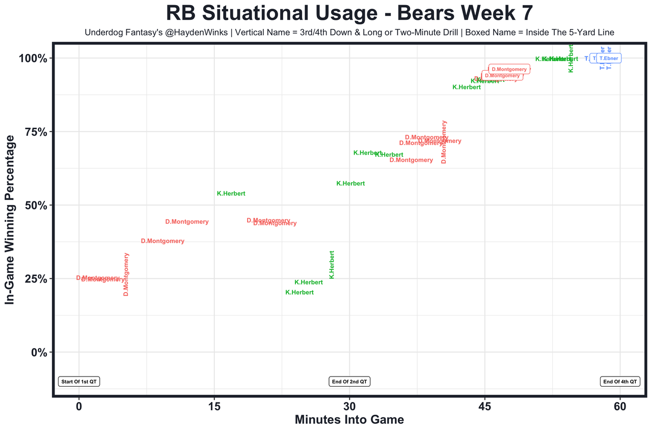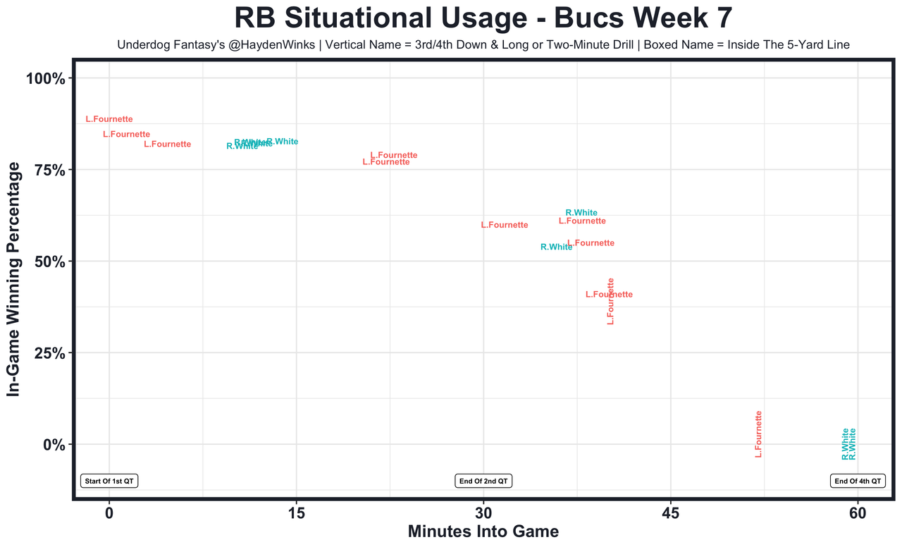 Leonard Fournette - He's played really poorly, showing less physicality up the middle and in pass protection. Distantly dead last in rushing EPA per carry with their LG and C struggling, the Bucs could pass more and get rookie Rachaad White more involved.