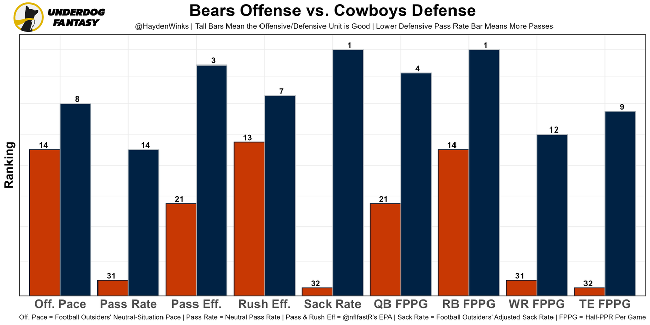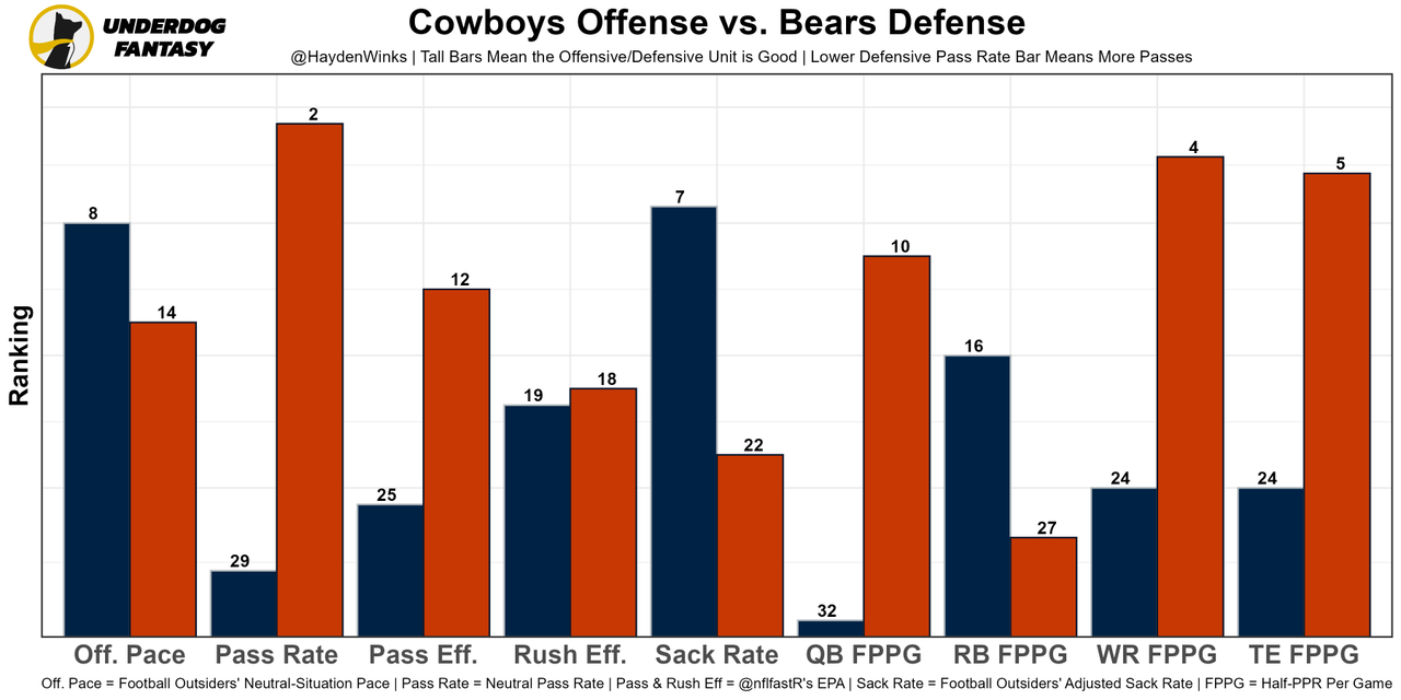 I didn't see any side effects of the thumb injury last week, and the Cowboys could pass more this week with Ezekiel Elliott (DNP Thursday) banged up. Plus, the Bears just traded away their best pass rusher this week.