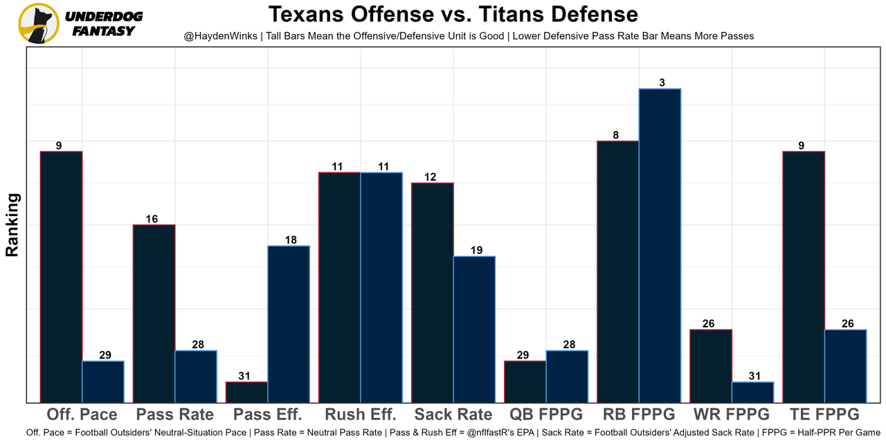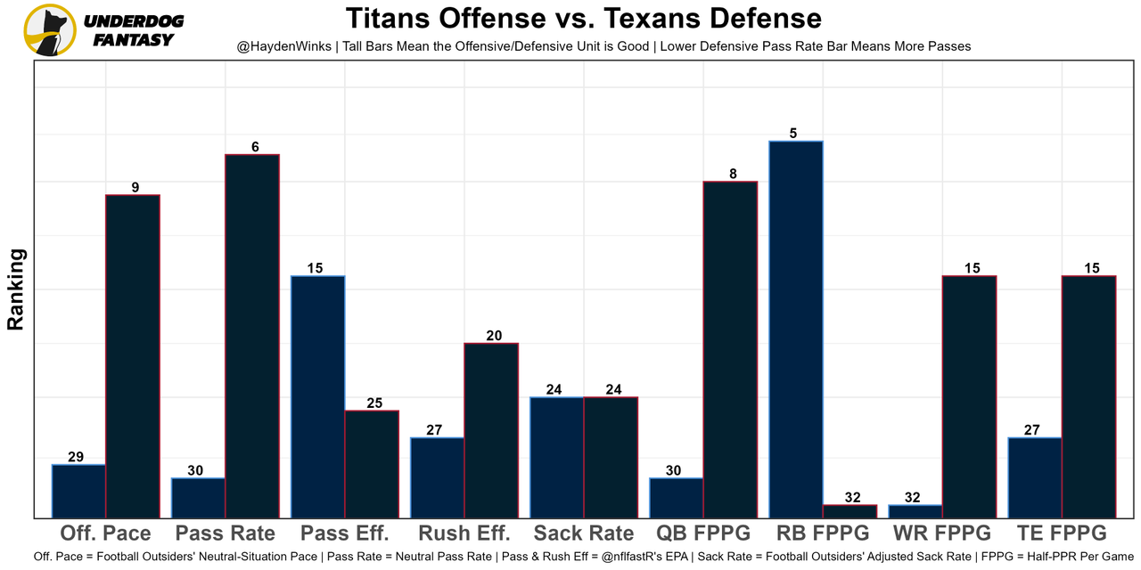 Offenses facing the Texans defense choose to run the ball at the 6th-highest rate. Don't have to dare the Titans to cooperate, especially with a mobile QB. The Titans team total dropped from about 22 points to 19.75 points since Tannehill's injury.