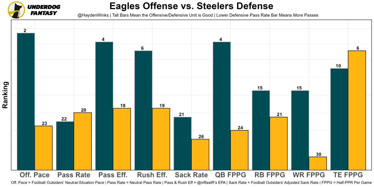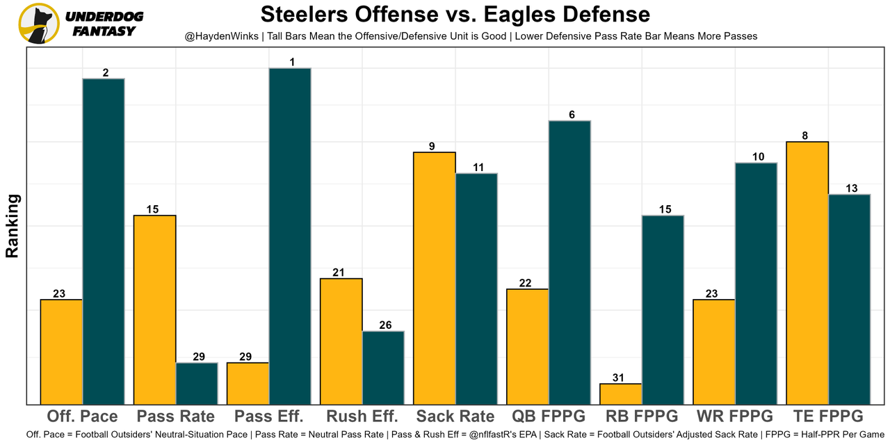Offenses facing the Eagles choose to pass at the 4th-highest rate in neutral situations, and this won't stay in a neutral situation most likely. There will be check-down volume. Just maybe not touchdowns. Pittsburgh is dead last in projected team total this week.