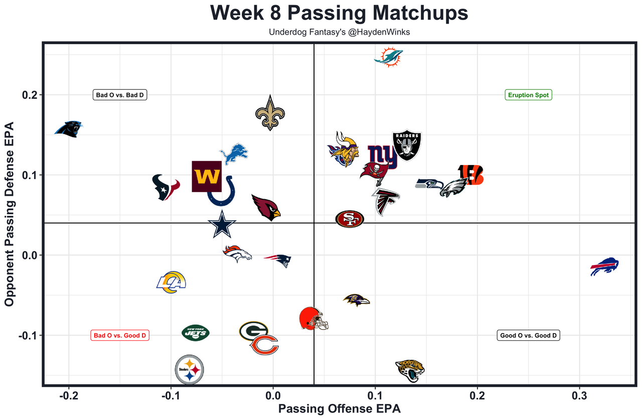 Given the performance-based starting nod by the coaches. Not a bad week to get that confidence boost at home against the worst defense against fantasy QBs. The Saints have a healthy 24.0-point team total.
