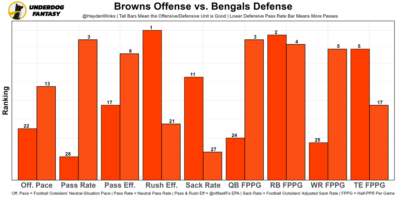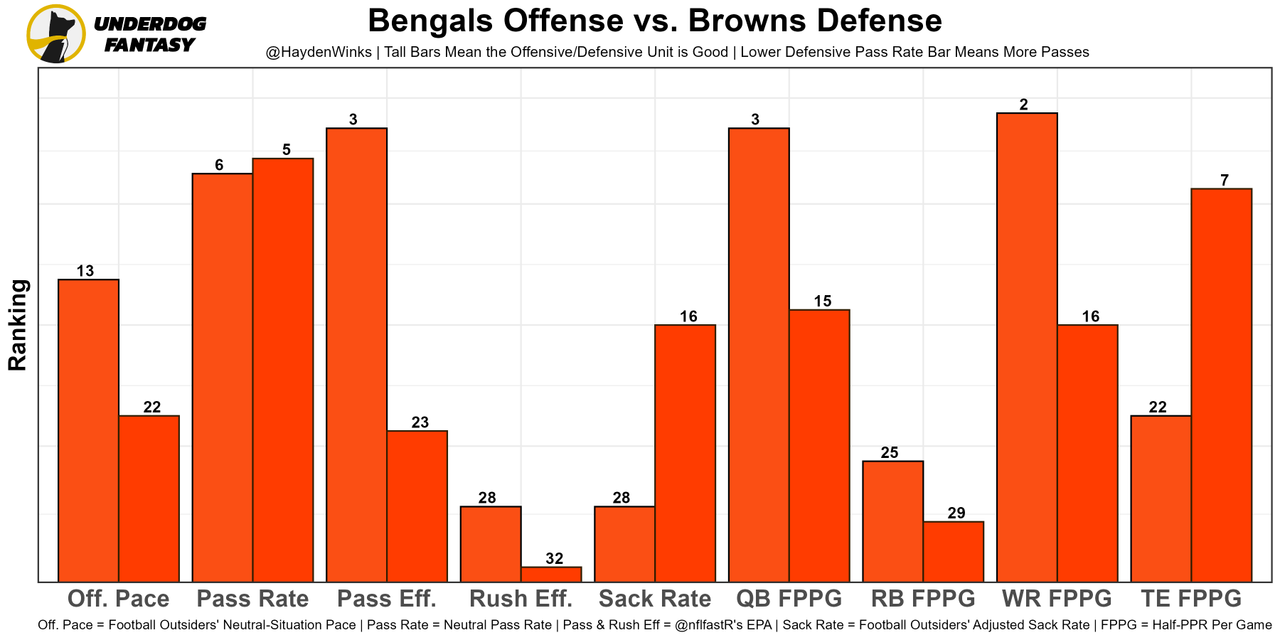 We broke him down with his tape here (video). It does hurt that Ja'Marr Chase (hip) is out, however, as the Bengals' implied team total has dropped 1.25 points since the news.