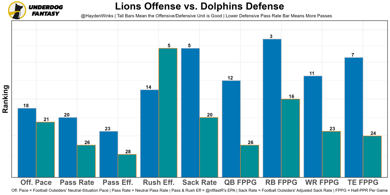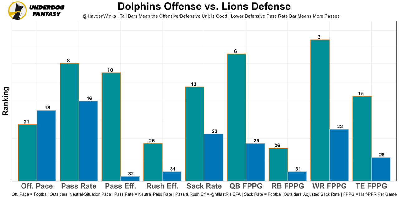 The Lions defense stinks, so Miami has the 2nd-highest team total of the week.