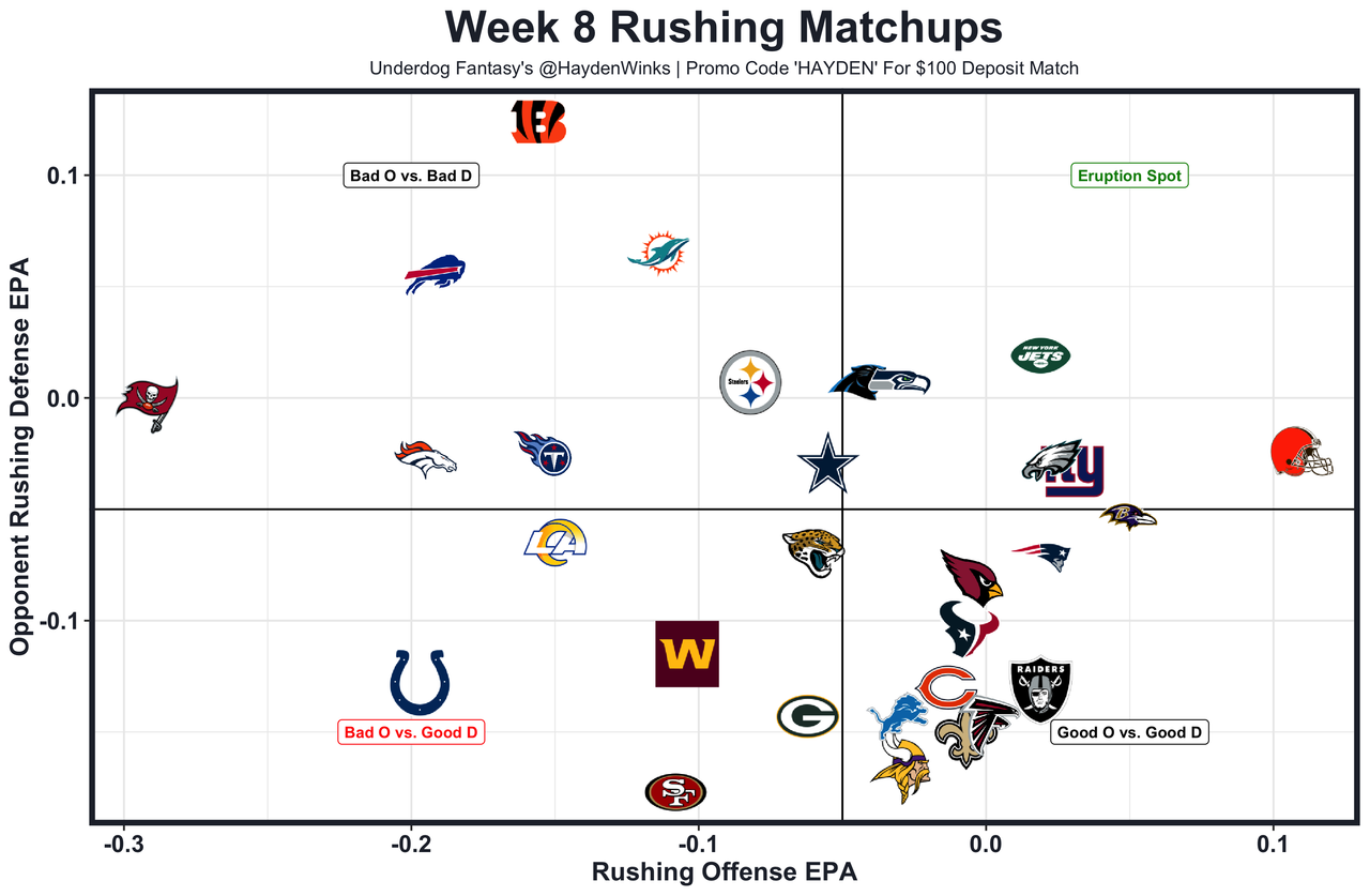 Devin Singletary - Zack Moss was healthy scratched in Week 6, leading to more work for Singletary. This assumes that happens again. It helps that the Packers are 30th in rushing EPA allowed and offenses facing the Packers are choosing to pass in neutral situations at the highest rate in the NFL. This is a good spot, all things considered, for Singletary.