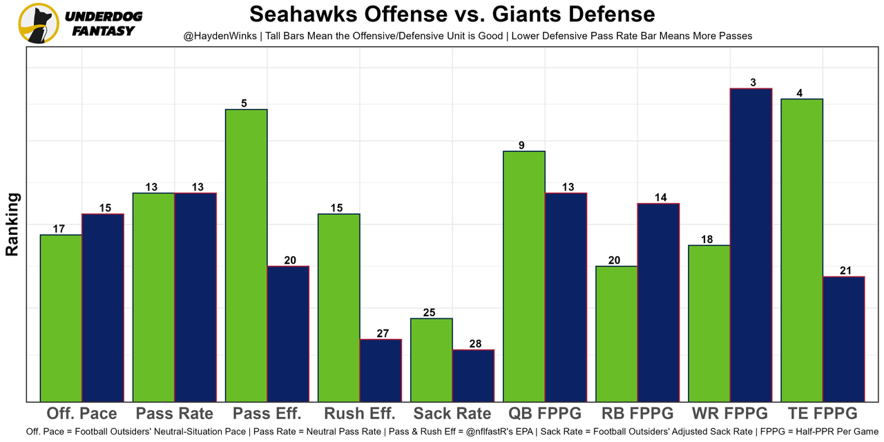 He's leading the NFL in completion percentage over expected, but a lot of those intermediate throws have been to DK Metcalf, who won't play.