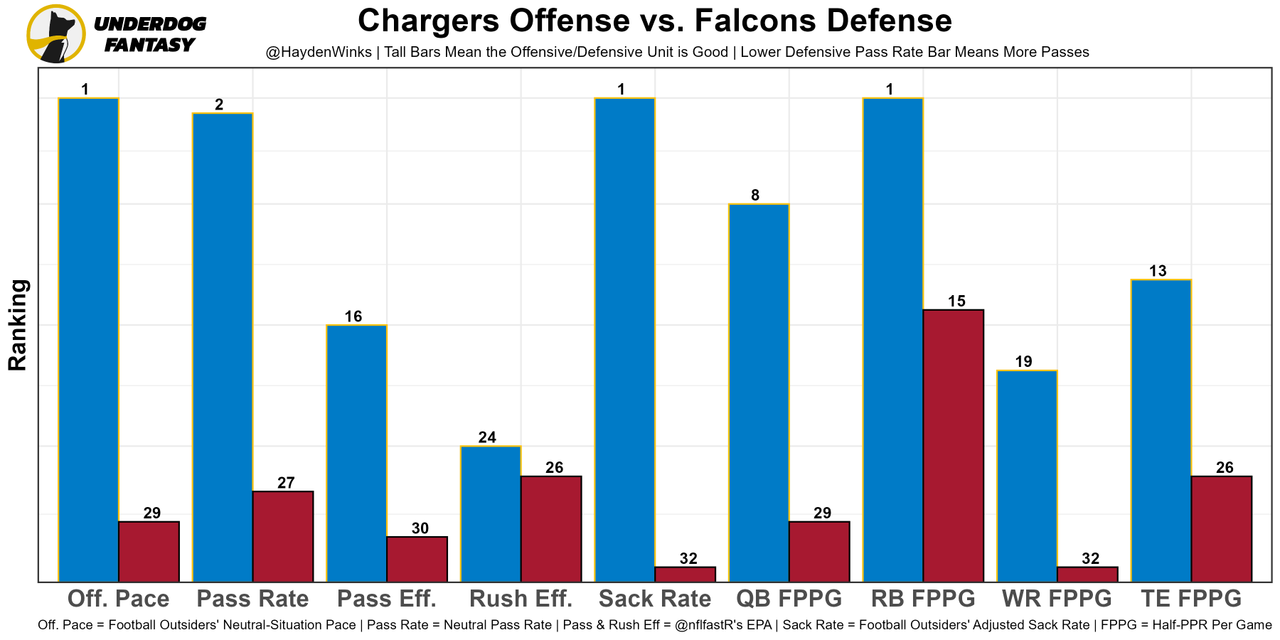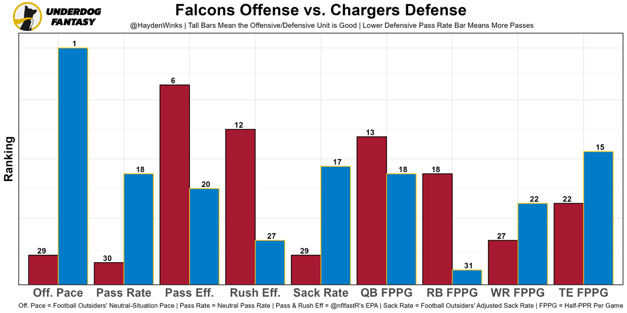 This assumes Mike Williams and Keenan Allen are out. At least, the Falcons are on schedule.